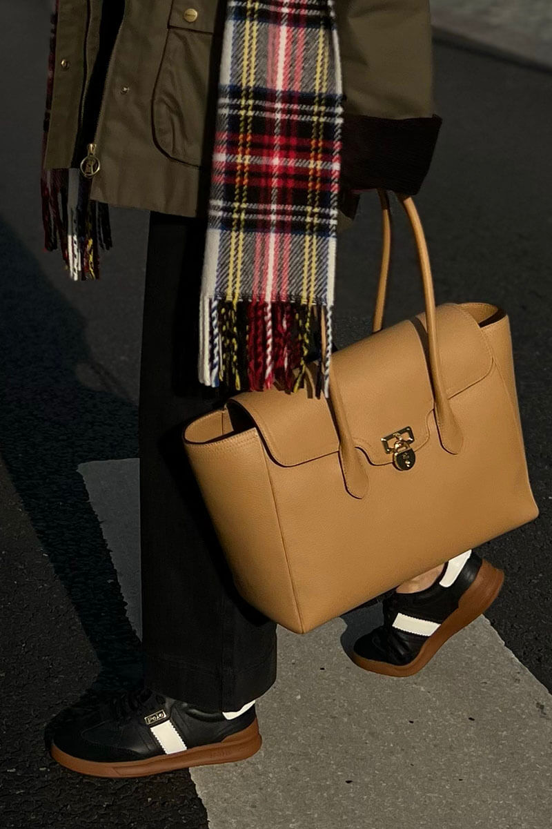 Arezzo Leather Handbag, Cannella & Contrast Stitch