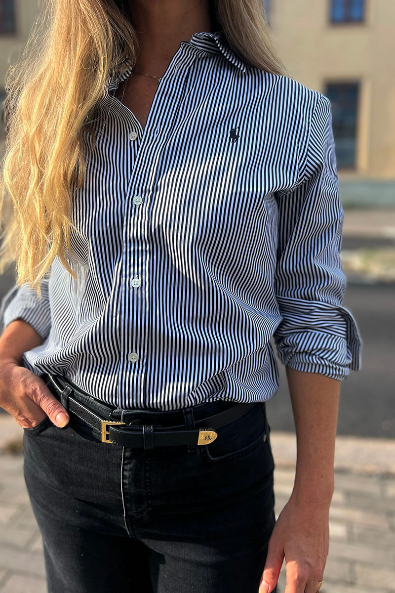 Slim Fit Striped Cotton Shirt, White & Polo Black