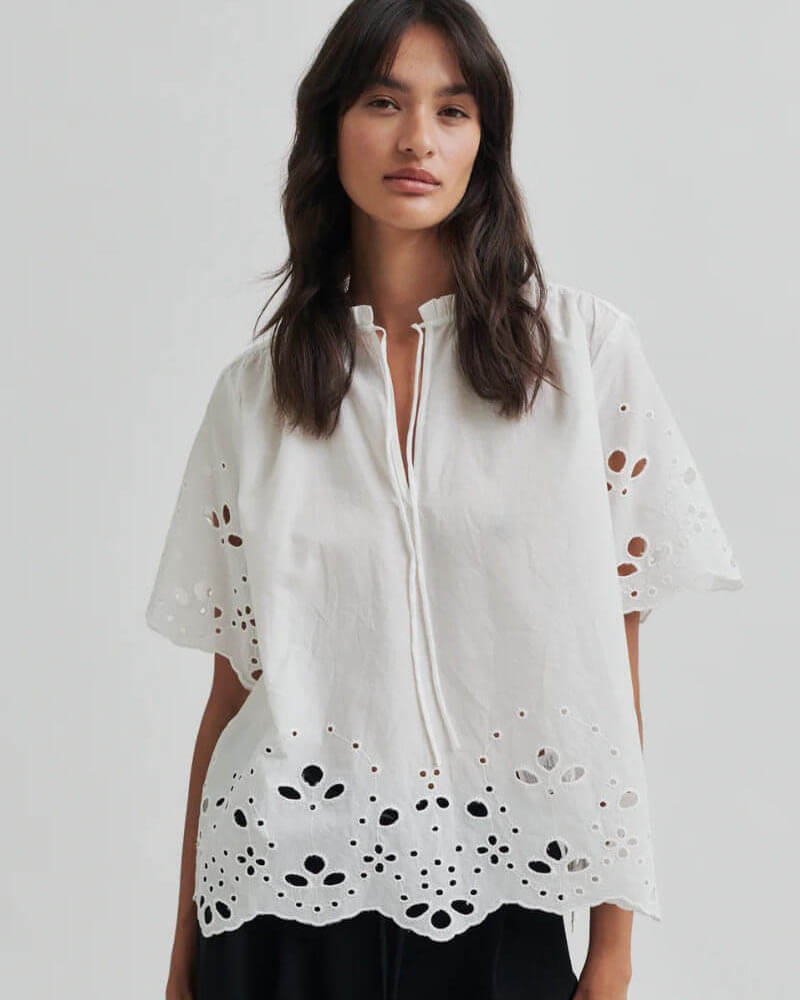Estela Broderie Anglais Blouse, White