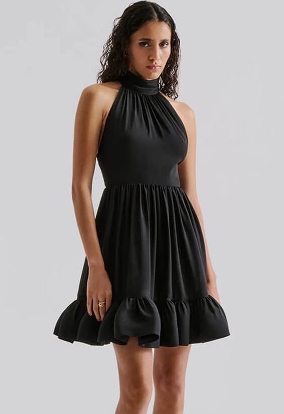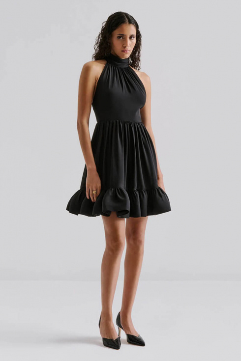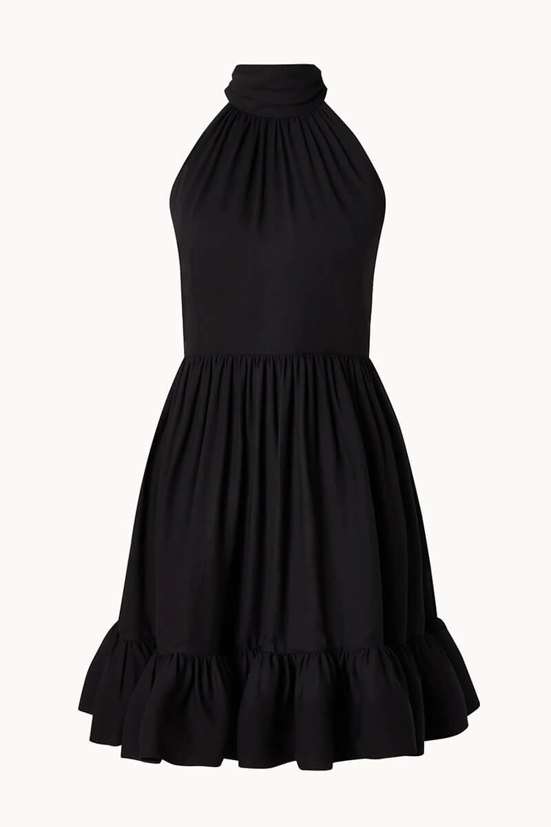 Fern Halterneck Ruffled Mini Dress, Black