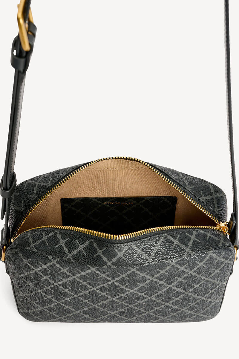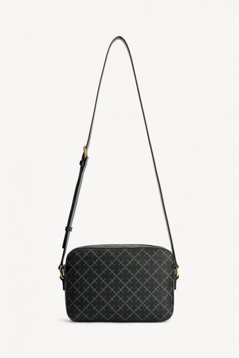 Mönstrad crossbody-väska som gör varje outfit intressant. Bär den över en kavaj och vida jeans för en look som andas storstad. Praktisk nog för vardag, snygg nog för sena middagar.Liten väska med avtagbar axelrem, stängs med dragkedja upptill, en innerficka och logga fram från By Malene Birger.