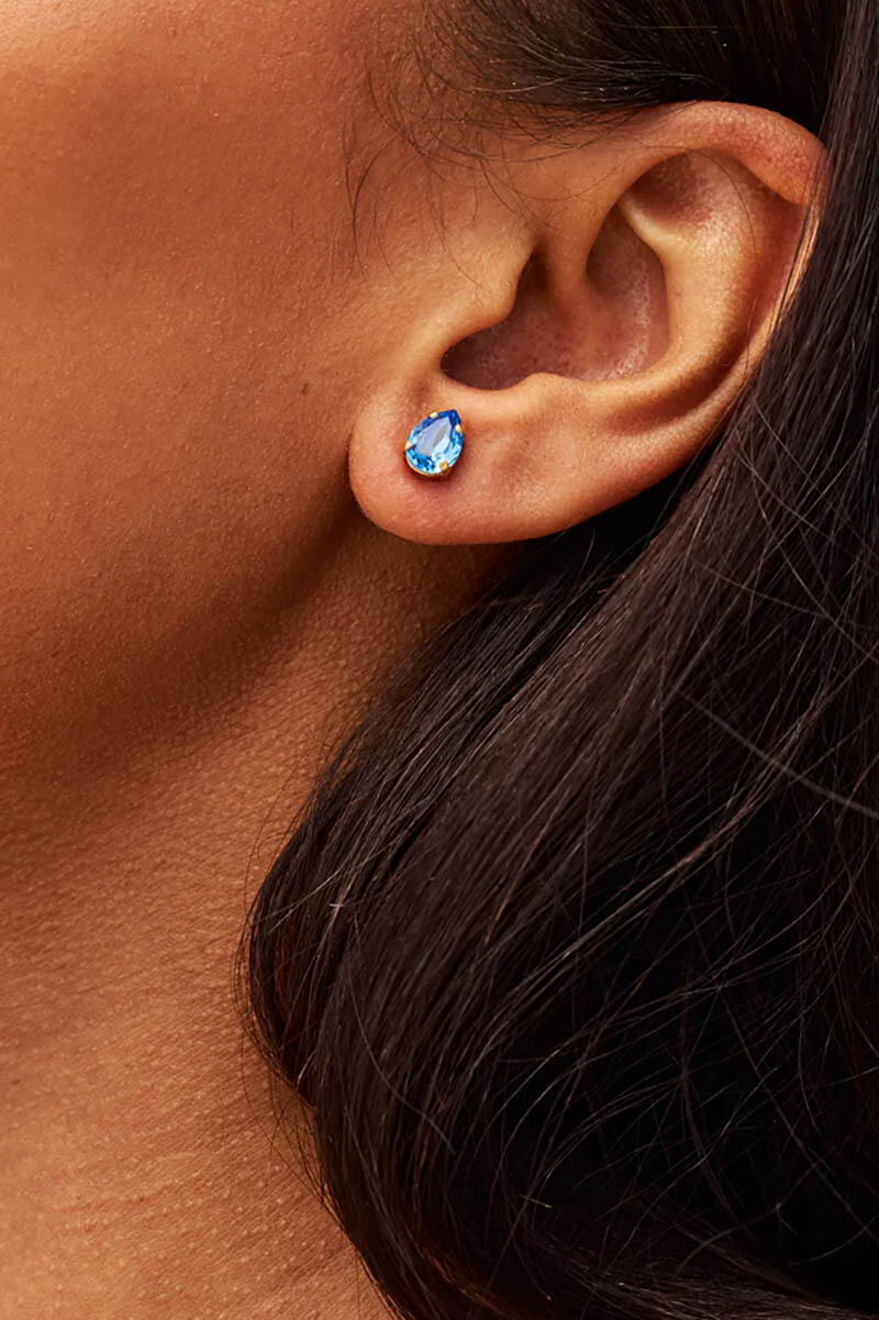 Örhängen gjorda i mässing med 18K guldplätering och gnistrande kristaller från Caroline Svedbom.