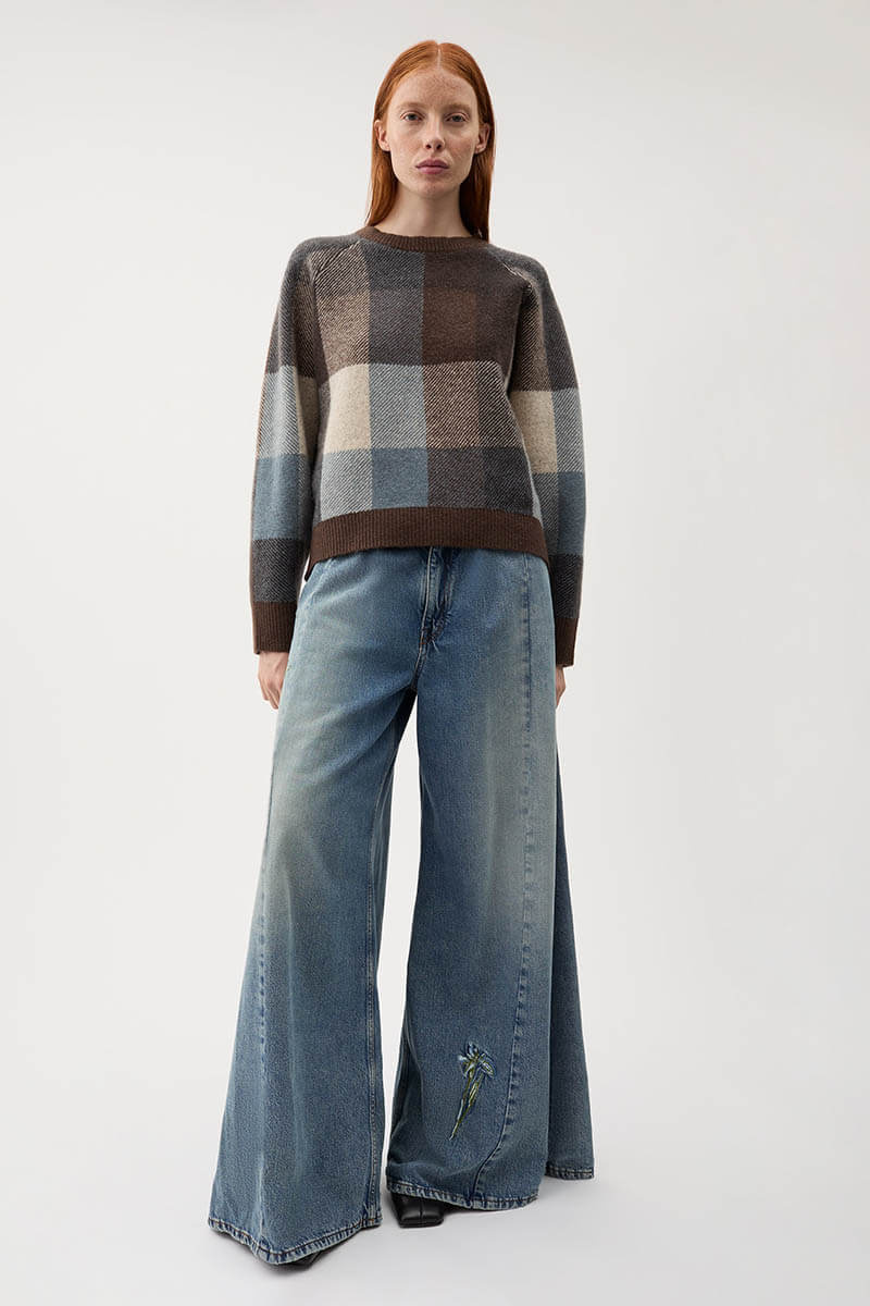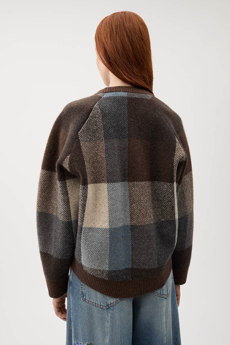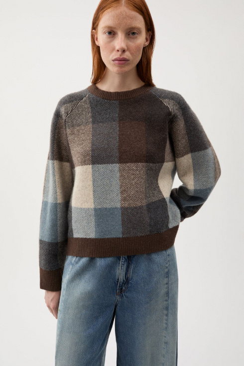 Denna rutiga tröja ger en modern kontrast till säsongens mjuka silhuetter. Stickad i en jacquard av ullblandning med en lätt stretch för extra komfort. En klassisk rundhalsad tröja med ribbade avslut och tidlös design. Stylea med ett jeans och skjorta under eller en kjol och scarf.