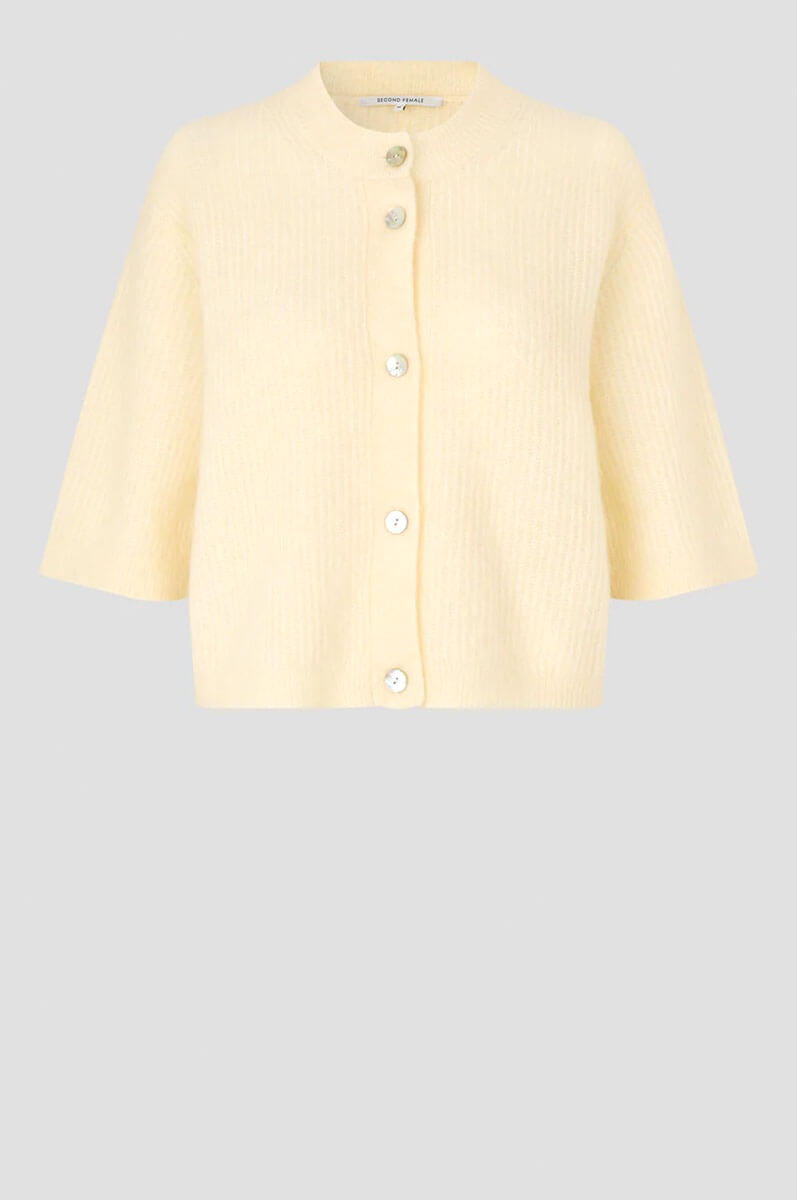 Möt koftan som gör varje dag lite mjukare. Stickad i en lyxig blandning, med perfekt boxig passform och knappar som detalj. Lika snygg till jeans som över en klänning. En ny favorit du aldrig vill ta av dig.Kofta i en fluffig mohairblandning med rund halsringning, korta ärmar, ribbstickade kanter, ledig passform och fallande axelsömmar från Second Female.