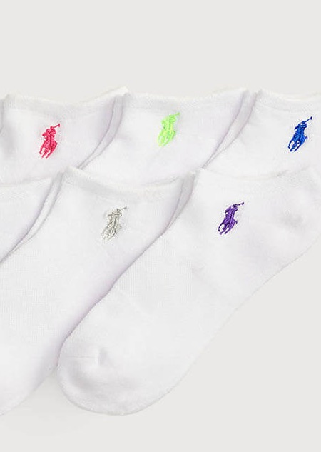 6-pack ankelstrumpor med ribbstickad kant och broderad logga i olika färger från Polo Ralph Lauren.- Onesize