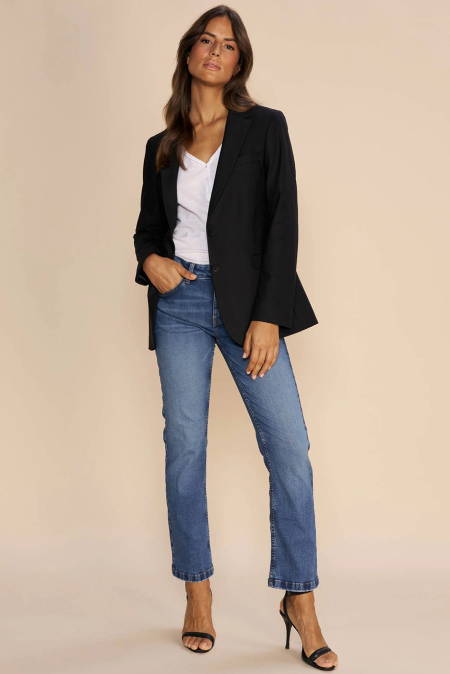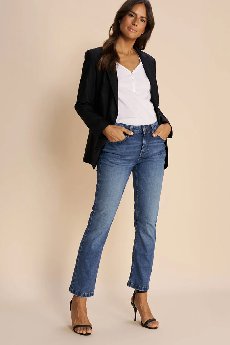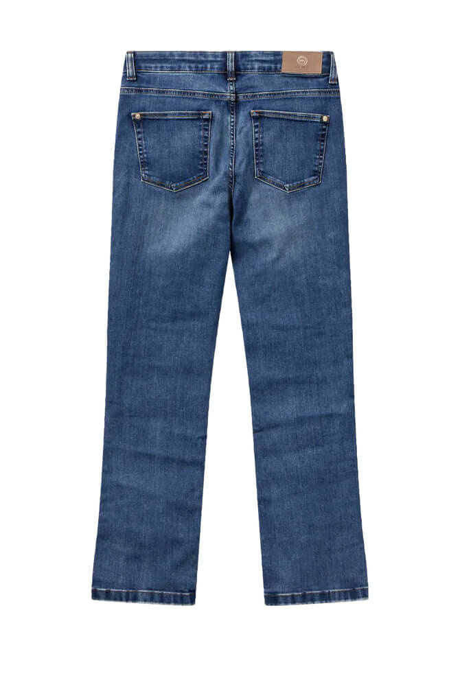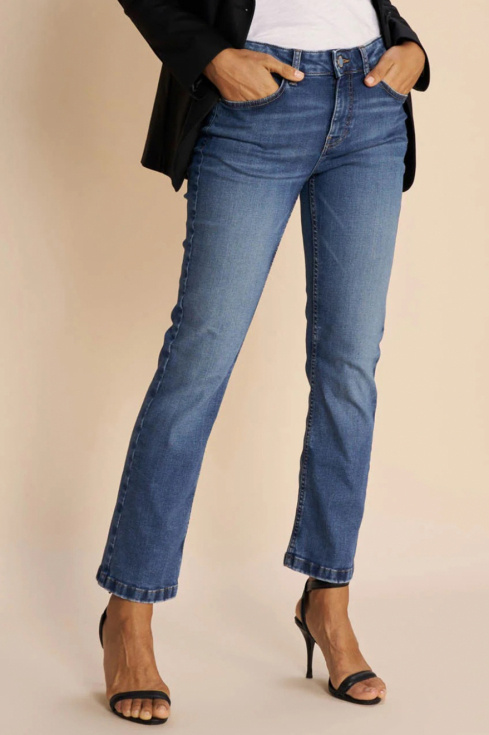 Dessa jeans i ankellängd är den perfekta mixen av komfort och stil. Med sin medelhöga midja och smickrande passform skapar de en tidlös siluett som passar till allt. Ett måste i garderoben!Jeans i en mjuk bomullsblandning med stretch, medelhög midja, smal passform och raka ben från MosMosh.