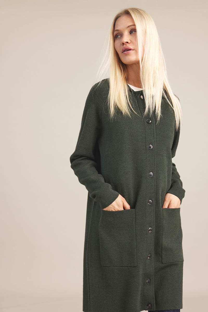 Barbro long cardigan, Khaki