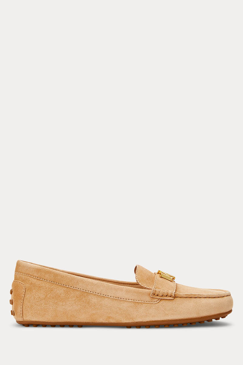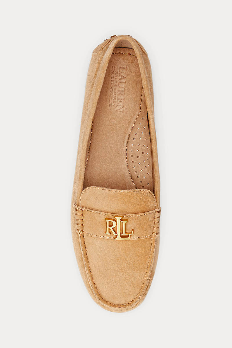 Loafers i mjuk mocka ger din outfit en sofistikerad och tidlös känsla. Perfekta för både avslappnade och formella tillfällen, de kombinerar komfort och stil. Style med med dina favoriter, like fint med klänning som med jeans.Loafers i mocka med läderfoder, yttersula i gummi och logga upptill från Lauren Ralph Lauren.