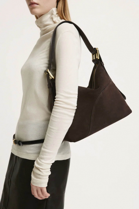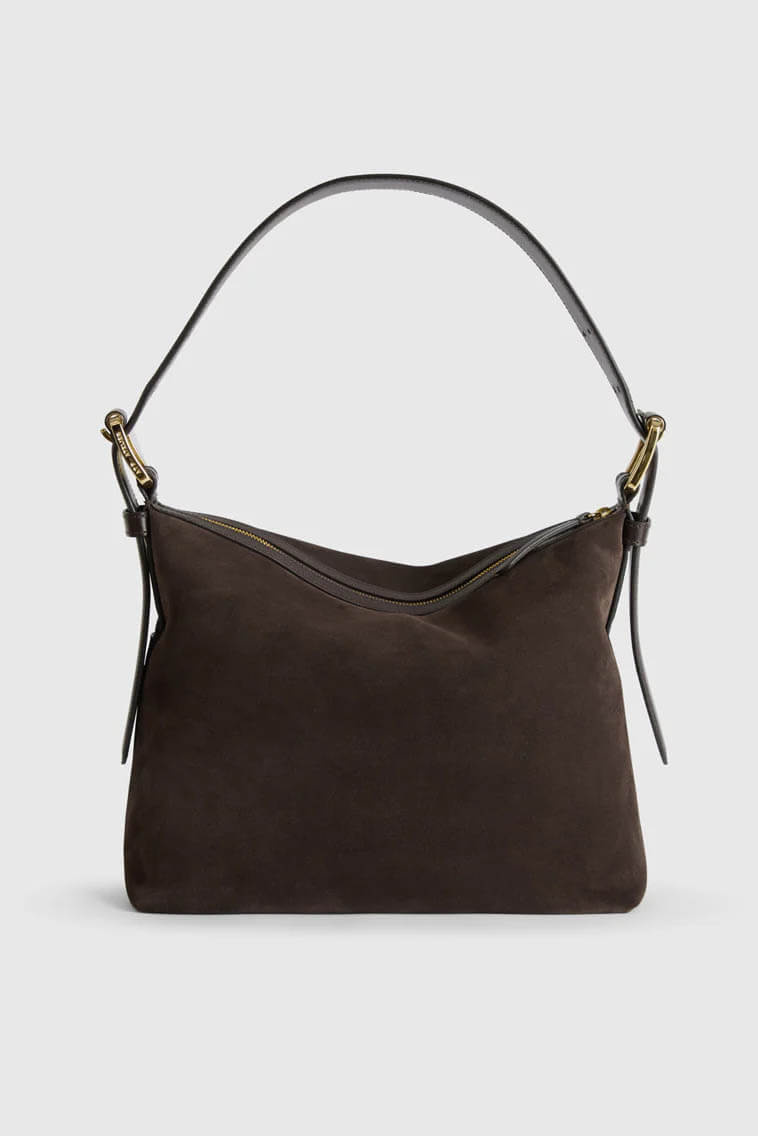 En lyxig väska du kommer använda dagligen!Bassanina är en mjuk tote-väska i avslappnad stil, handgjord i Italien av mjukt mocka. Med guldfärgade detaljer är den perfekt i storlek för både dag och kväll och kan bäras på axeln eller i handen.