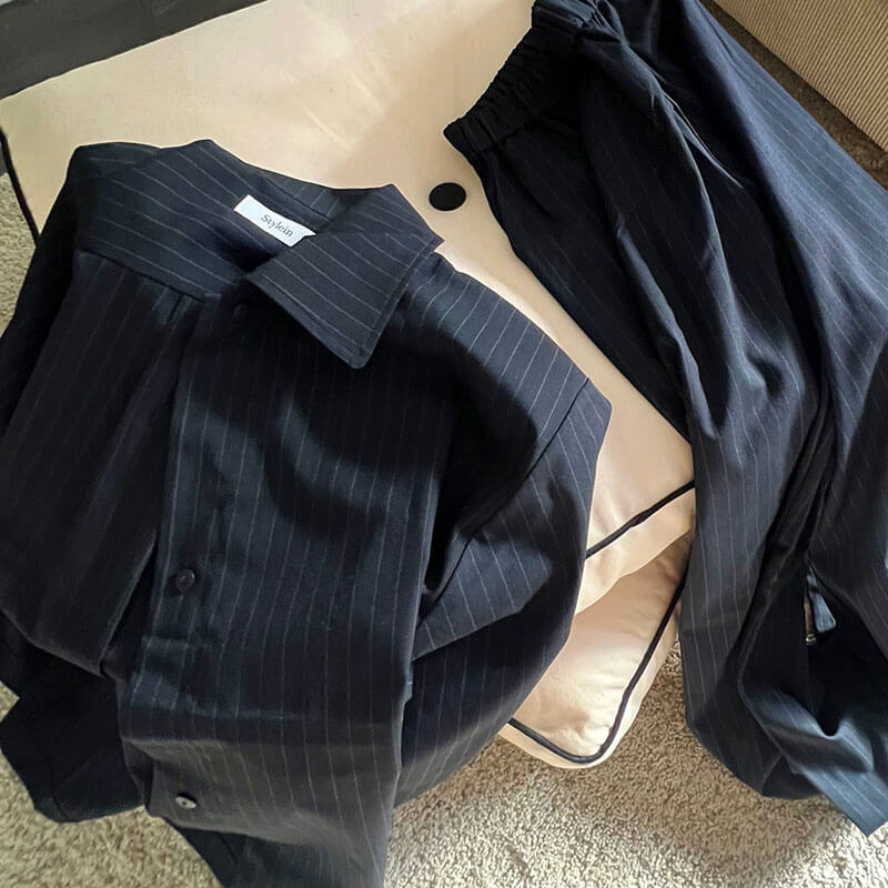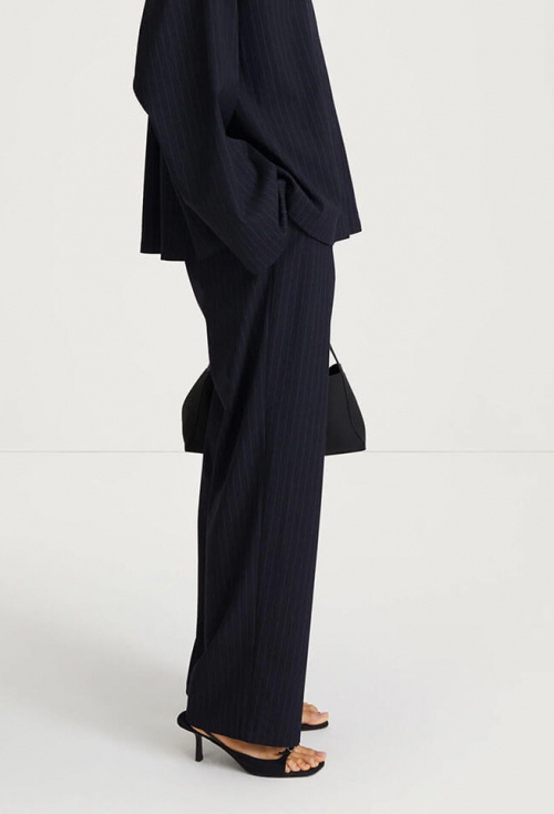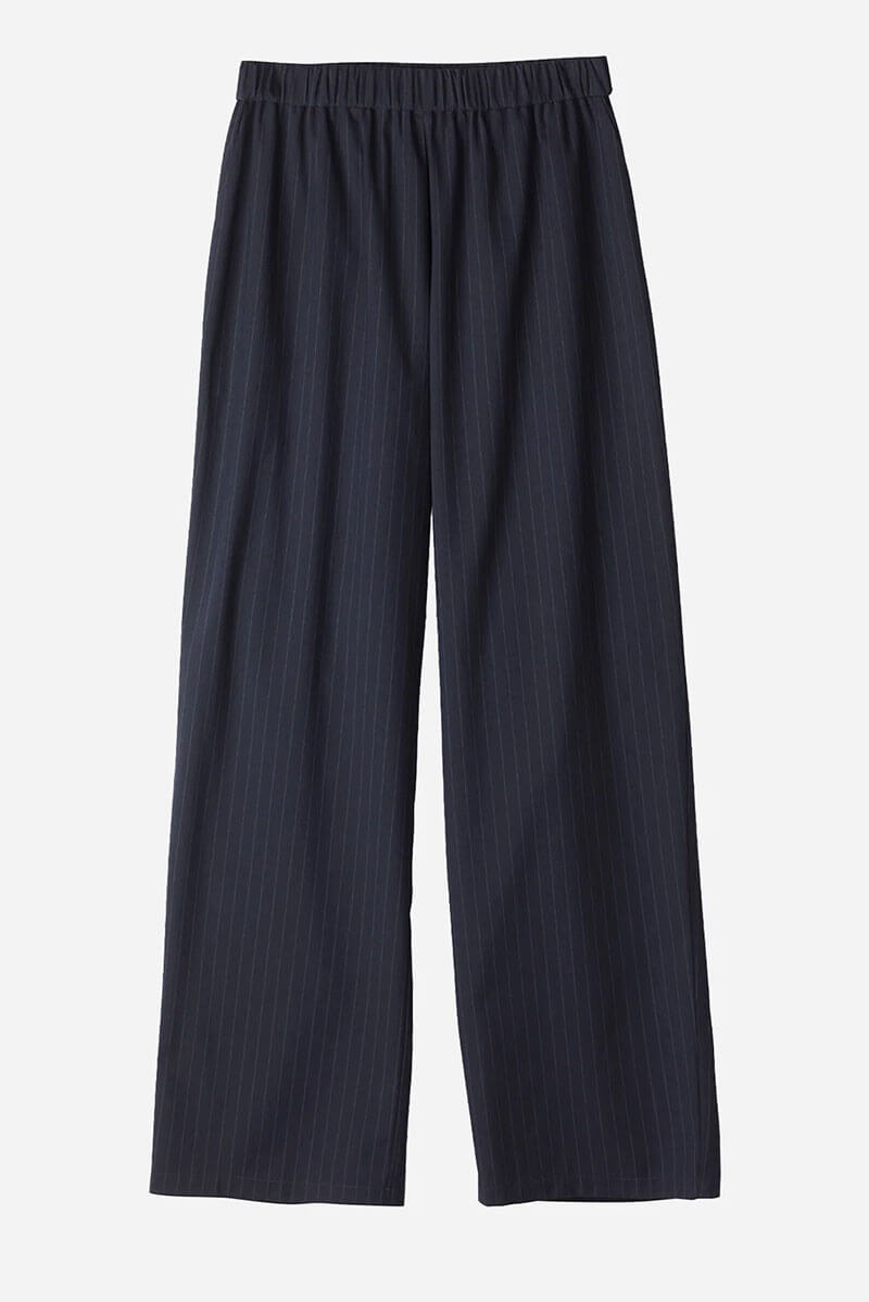 Belicia-byxan – avslappnad elegansVida, avslappnade byxor i en mjuk kostymkvalitet med en diskret rand i styget. Designade med rak linning och bred resår för en bekväm passform. Snedställda sidfickor och en hellång silhuett ger en sofistikerad men ändå lättburen look.