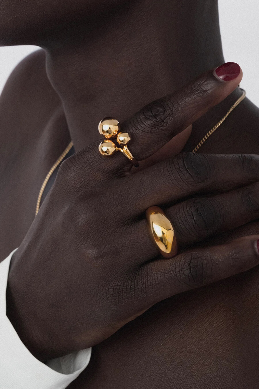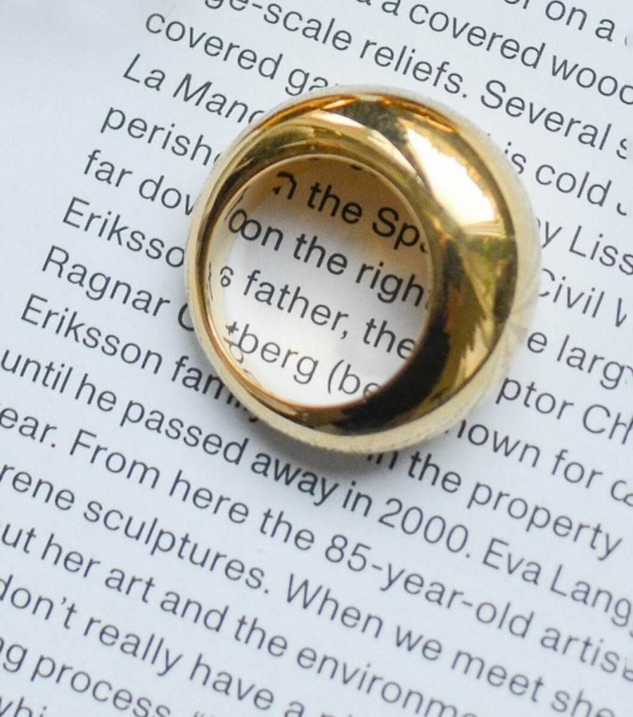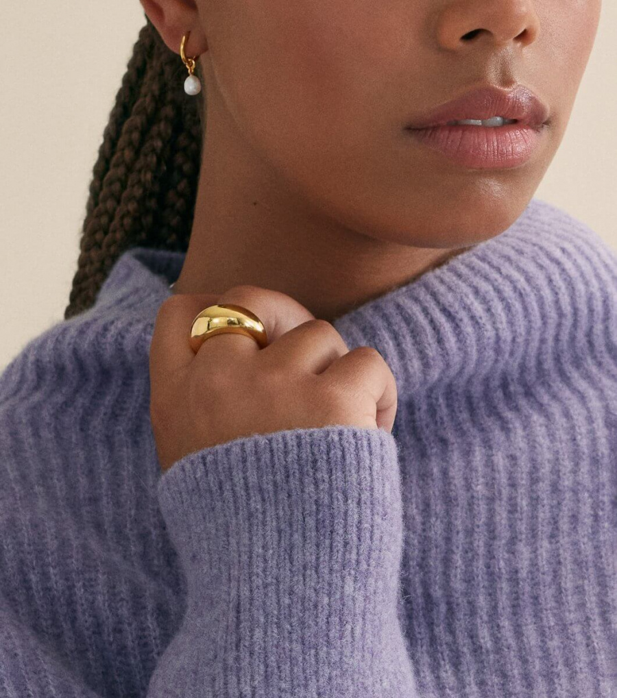 Denna tjocka guldiga ring är ett perfekt statement för modern elegans. Med sin tidlösa design adderar den en touch av lyx till varje outfit!Ring gjord i sterling silver med 18K guldöverdrag från Syster P.
