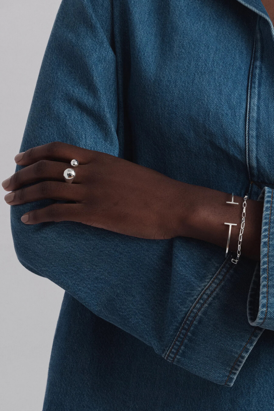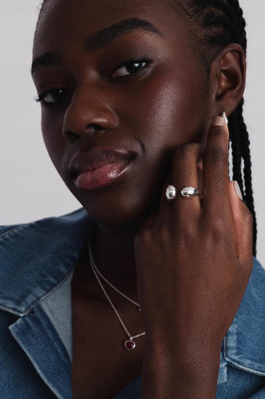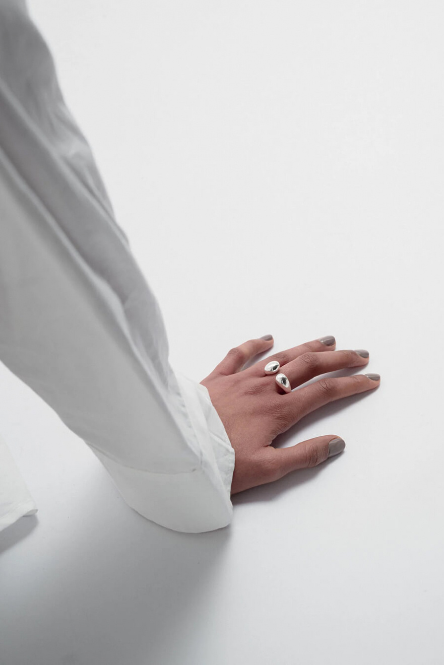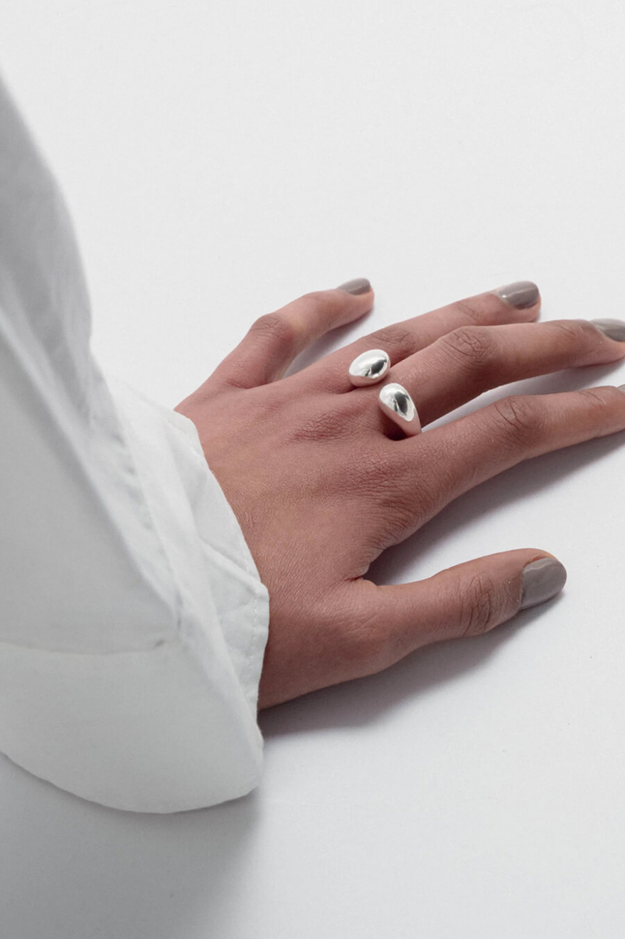 Låt ditt uttryck stråla med denna skulpturala ring. Med sin distinkta, organiska form blir den ett statement som lyfter varje look!Ring gjord i sterling silver från Syster P.