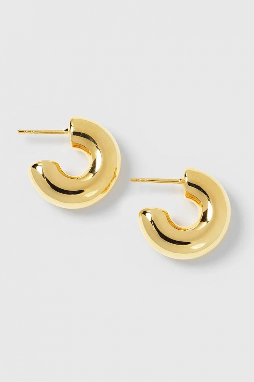 Storfavoriten bolded hoops från Syster P. Lagom stora men lätta örhängen tack vare produktionstekniken elektroformning. Örhängena är tillverkade i 100% återvunnet silver, pläterade med 18K guld. Bär dem ensamma eller matcha dem med andra smycken.