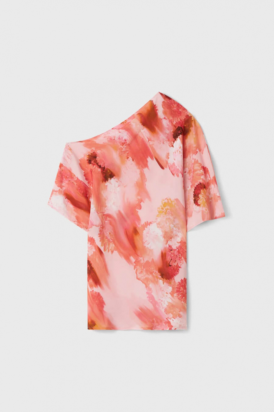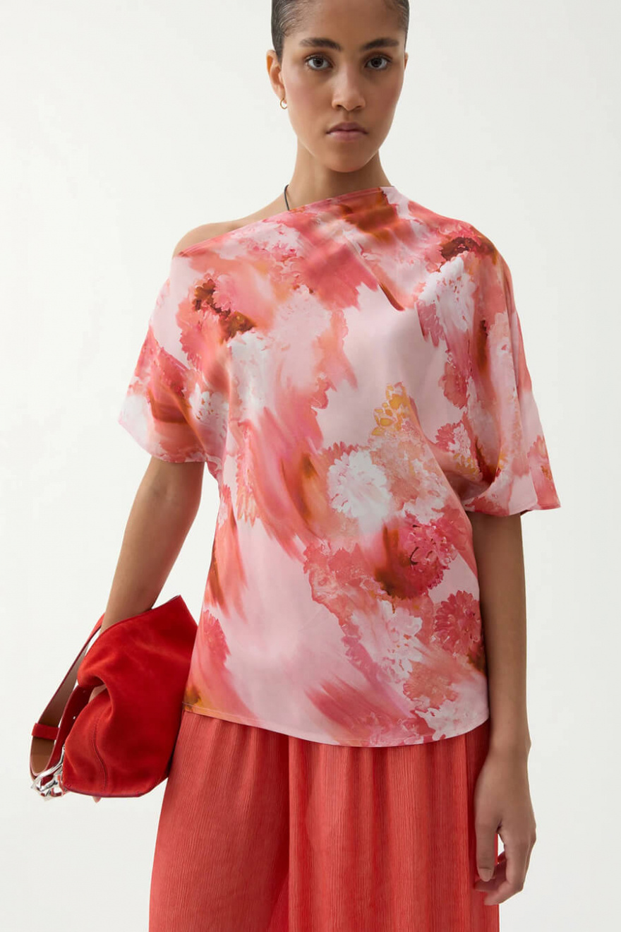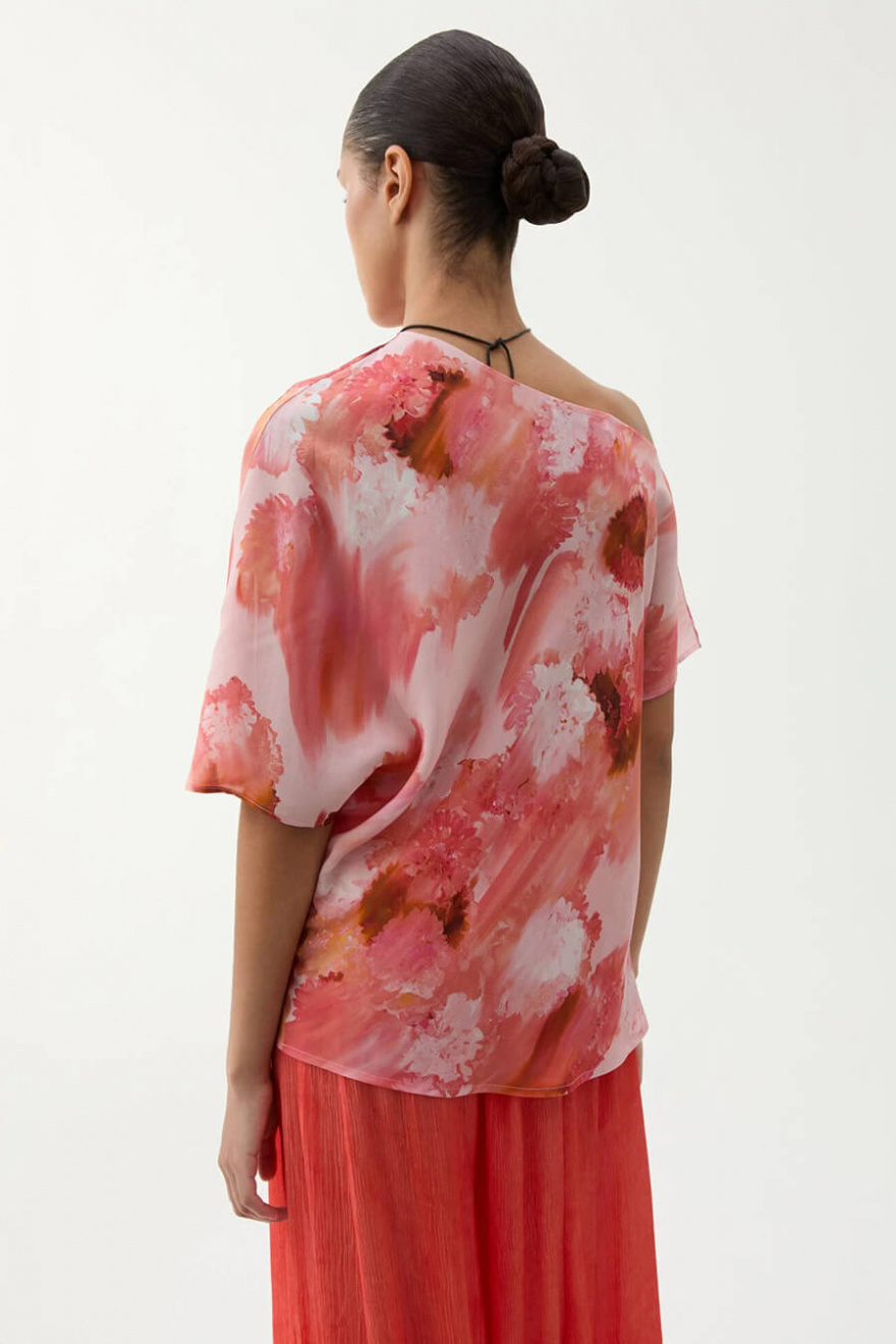 En blus som gör hela looken. Med sitt konstnärliga mönster och avslappnade silhuett balanserar den det sofistikerade med det lekfulla. Perfekt till både jeans och skräddade byxor – en statement-piece som tar dig från dag till kväll.Blus i rayon med asymmetrisk halsringning med vid ärm, ledig passform och en kortare ärm från Rodebjer.