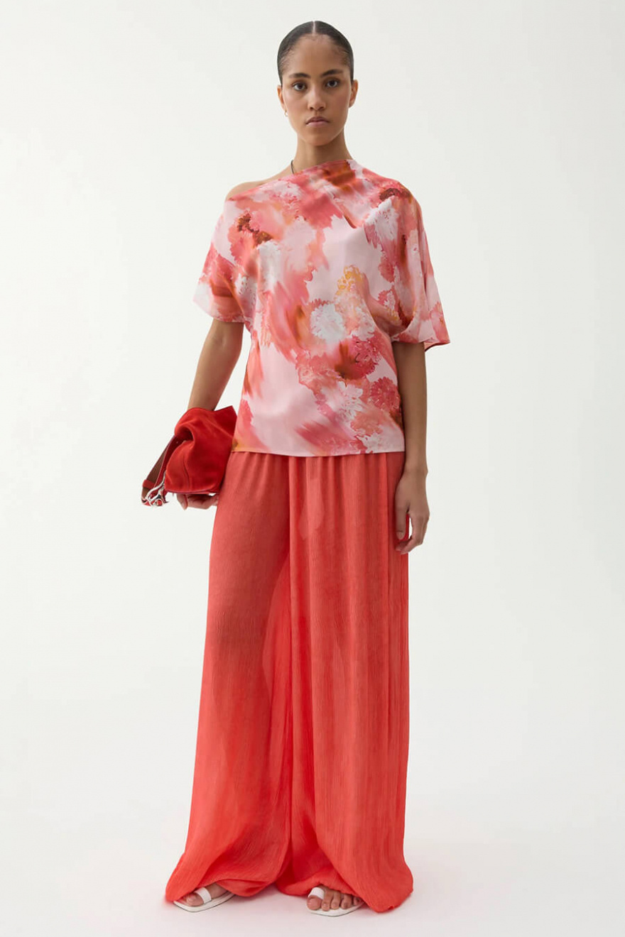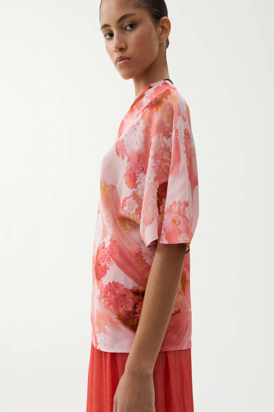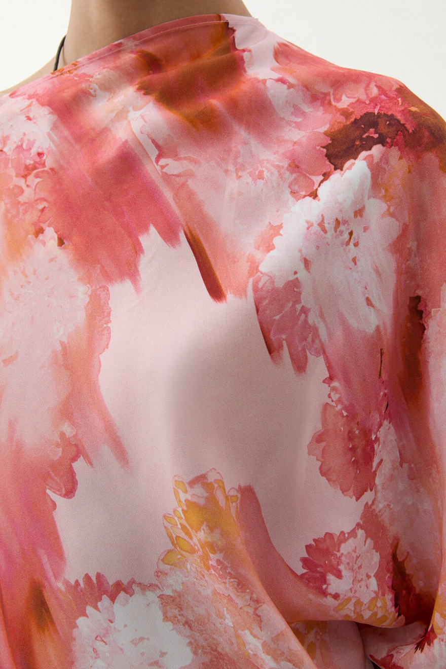 En blus som gör hela looken. Med sitt konstnärliga mönster och avslappnade silhuett balanserar den det sofistikerade med det lekfulla. Perfekt till både jeans och skräddade byxor – en statement-piece som tar dig från dag till kväll.Blus i rayon med asymmetrisk halsringning med vid ärm, ledig passform och en kortare ärm från Rodebjer.