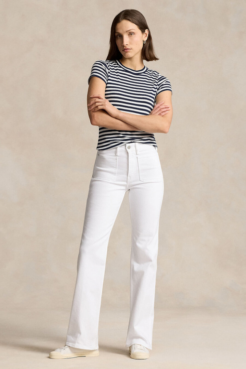 Det här lätta snygga sommarjeansen är skuret för en klassisk bootcut-siluett och är tillverkad av turkisk denim av hög kvalité med en antydan till stretch och den rena texturen av twill.Bootcut: bootcut-jean sitter i den riktiga midjan och sitter genom höften och låret med ett lätt utsvängt ben. Designad för att träffa under ankeln.