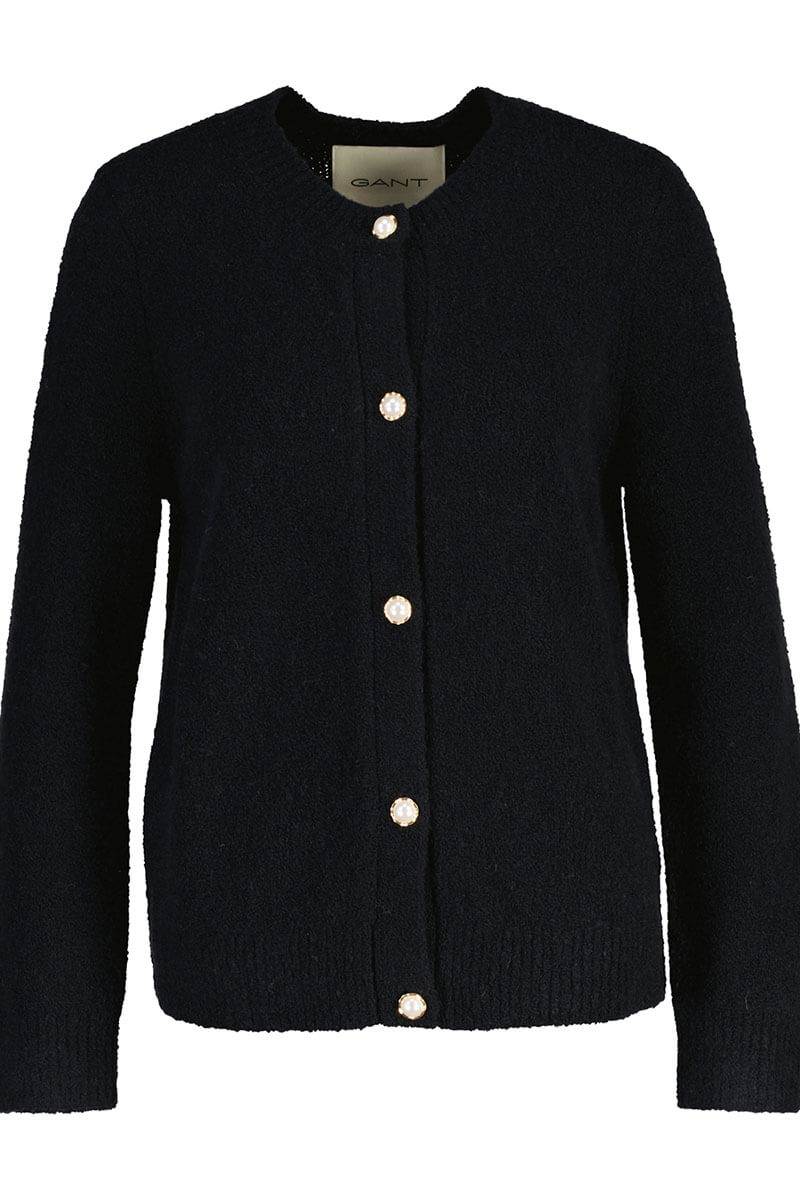 Den här lyxiga koftan i en exklusiv bouclé- och ullblandning är lika mjuk som den är elegant. Perfekt när du vill känna dig lite extra fin – oavsett om det är vardag eller högtid.