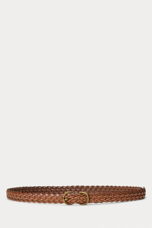 Lyft din outfit med detta smala bruna flätade bälte – en tidlös accessoar som balanserar elegans och funktion. Perfekt för att markera midjan på klänningar eller addera detaljer till jeans.Flätat smalt bälte i mjukt läder med guldfärgat spänne fram från Polo Ralph Lauren.