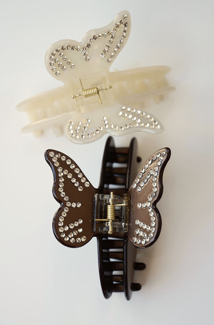 En roligare hårklämma med dekorativ fjäril och handgjorda detaljer med stenar från Elin et Acc.- 100% Cellulosaacetat