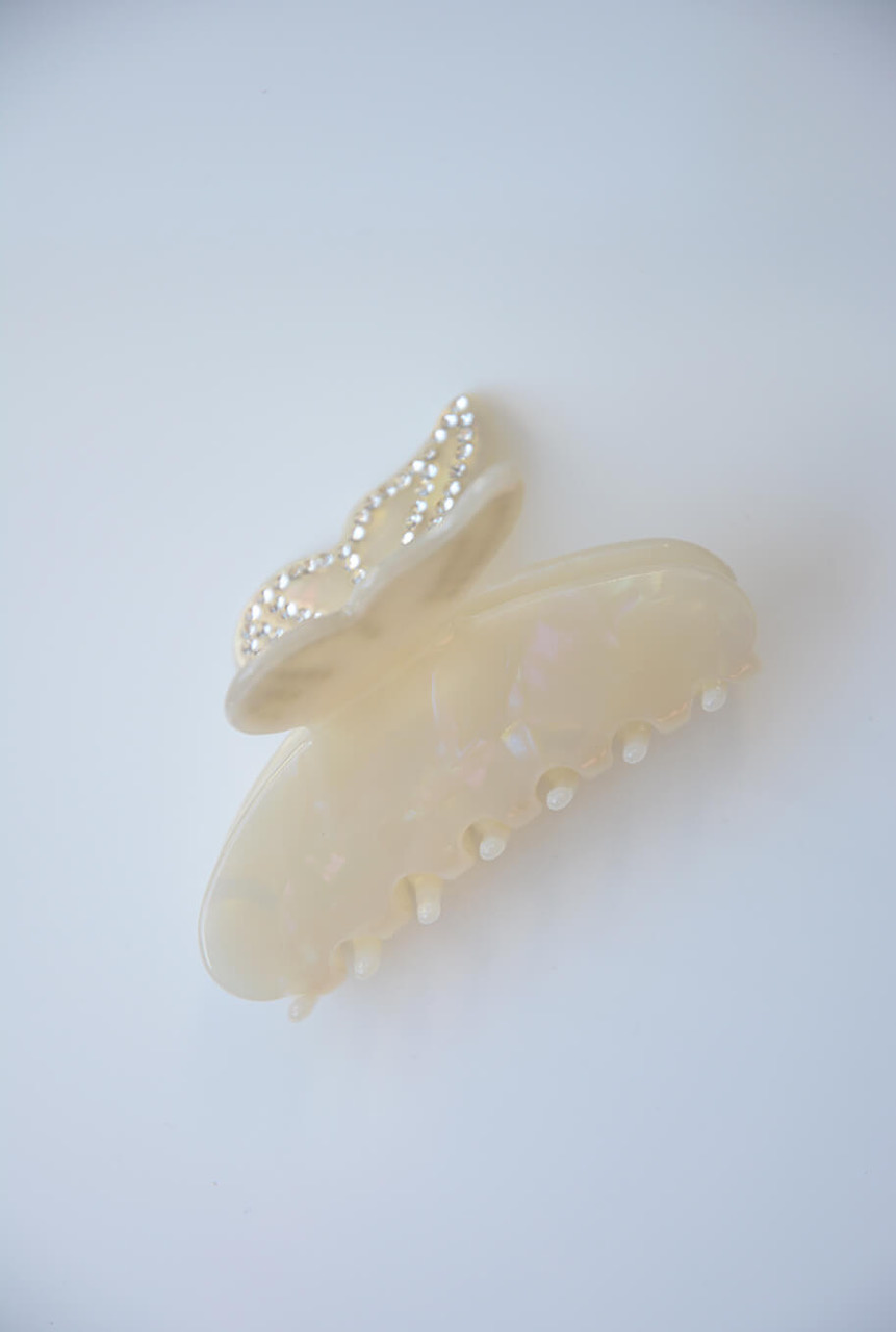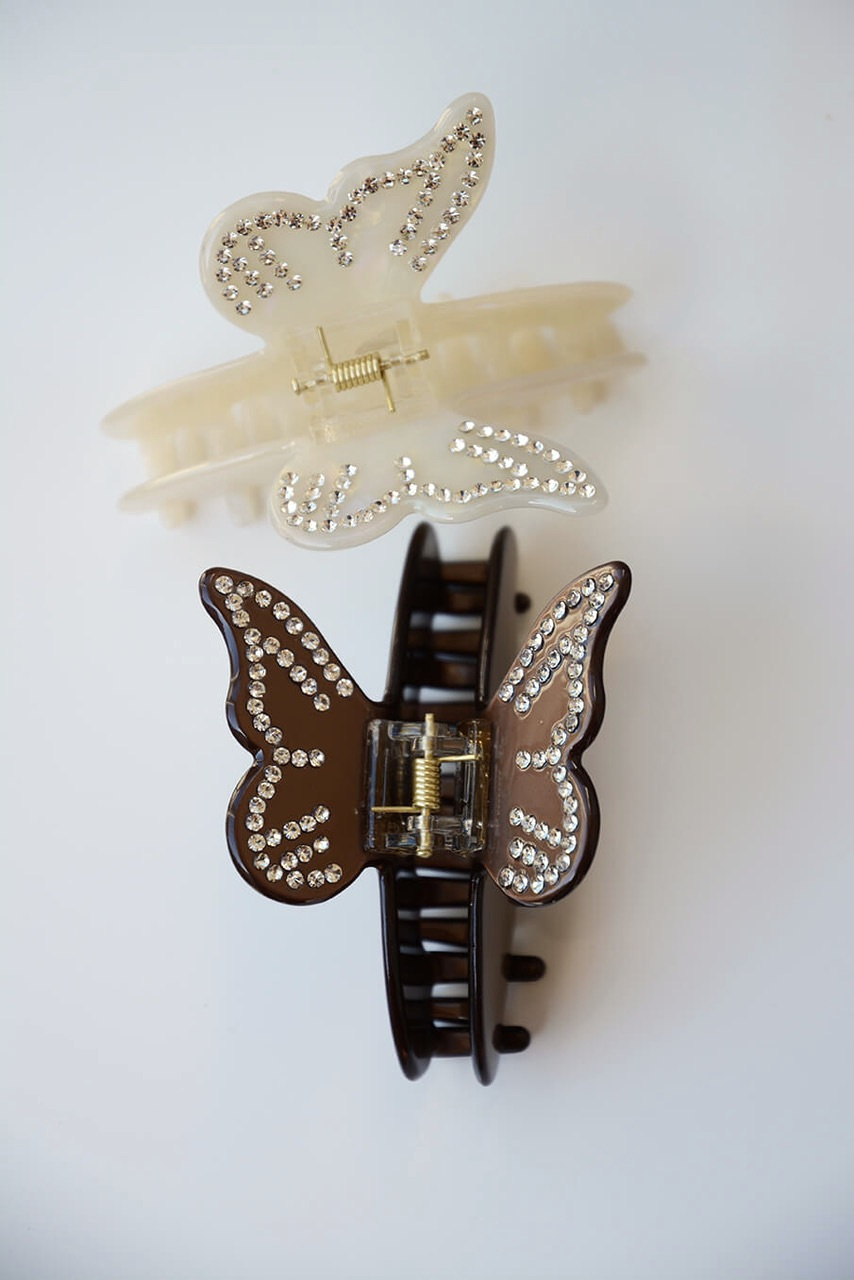 En roligare hårklämma med dekorativ fjäril och handgjorda detaljer med stenar från Elin et Acc.- 100% Cellulosaacetat