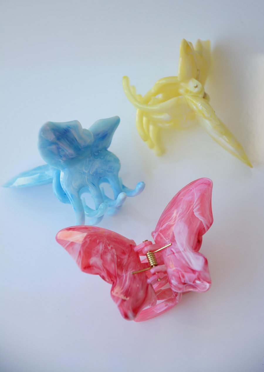 Hårklämma formad som en fjäril och är gjord i cellulosaacetat som gör varje hårklämma unik i sitt utseende från Elin et Acc.- 100% Cellulosaacetat