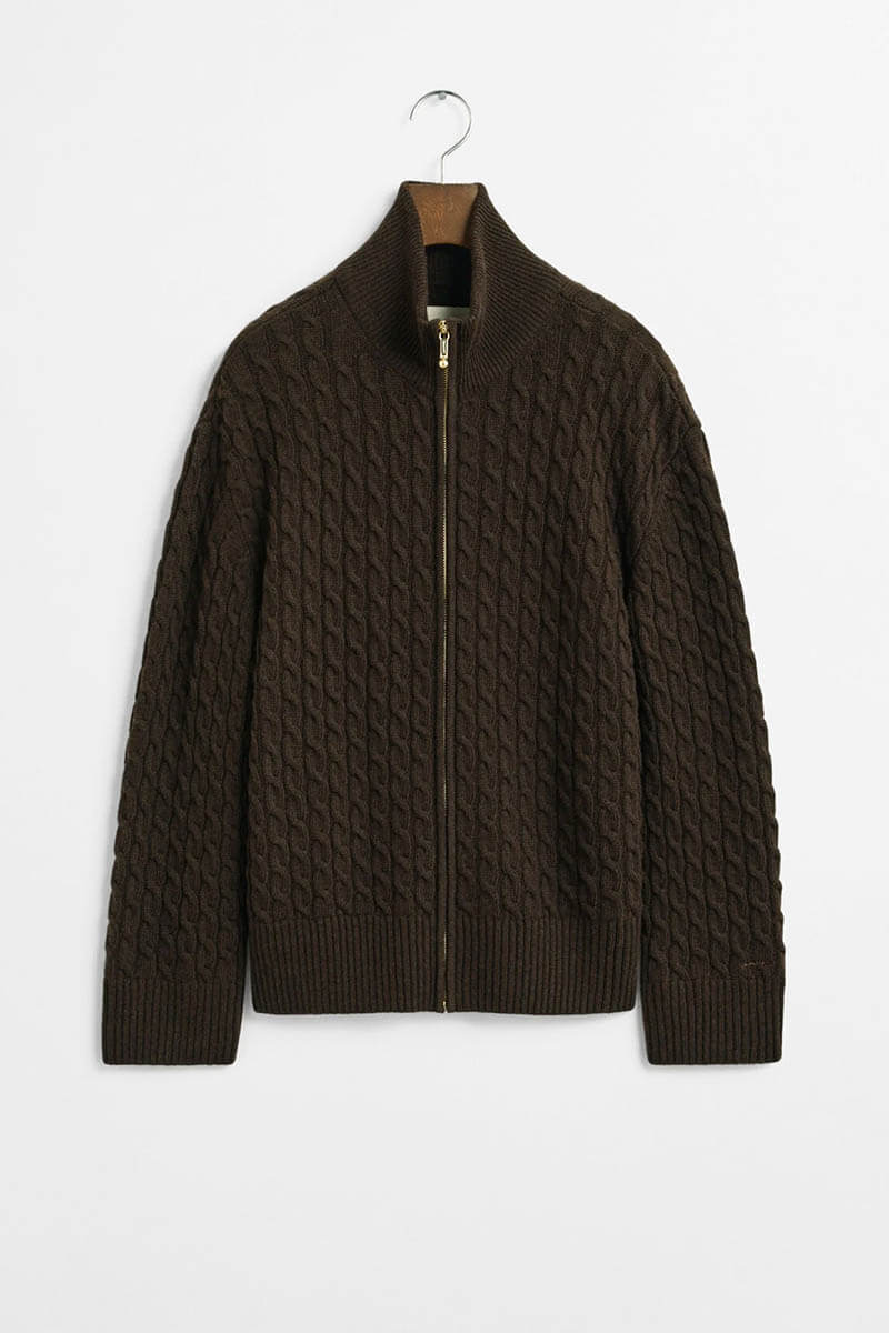 Cable knit zip Cardigan, Brown