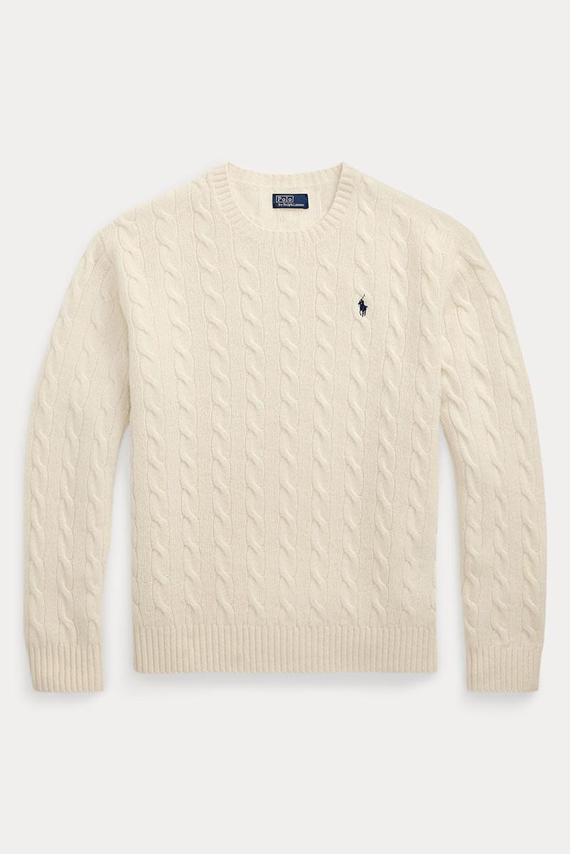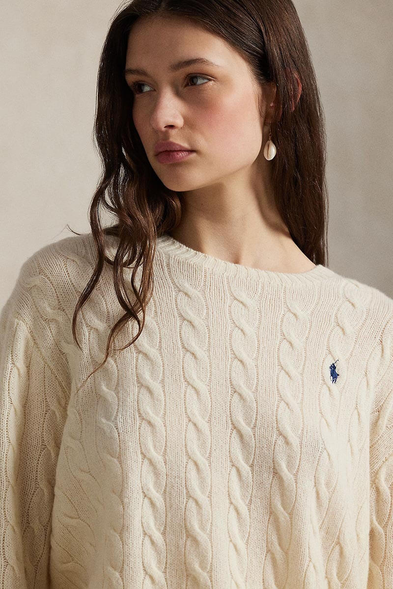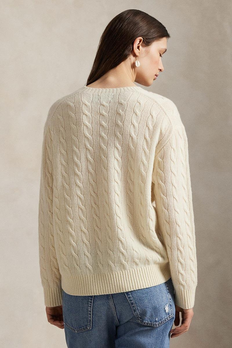 Cable wool-cashmere crewneck sweater, Authentic cream