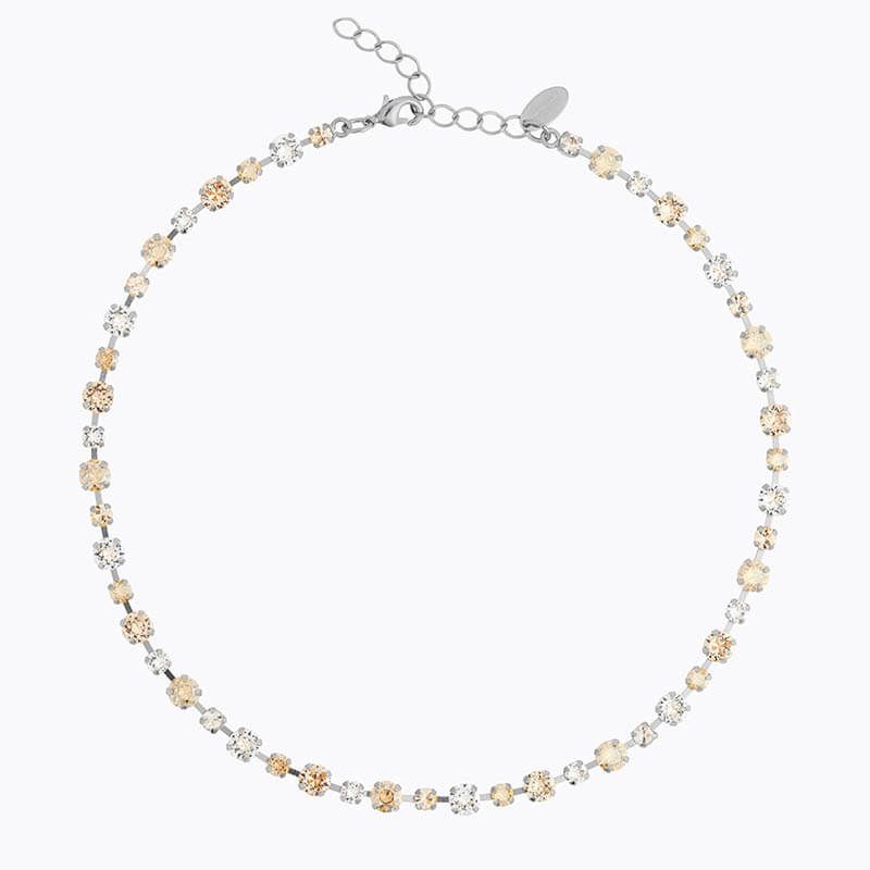 Justerbart halsband gjord i mässing med rodiumöverdrag och Swarovski kristaller från Caroline Svedbom.100% Nickelfri