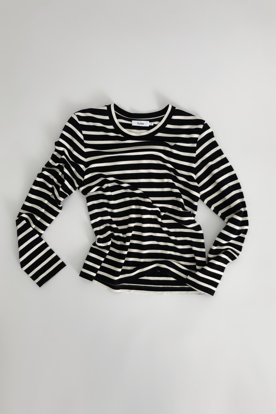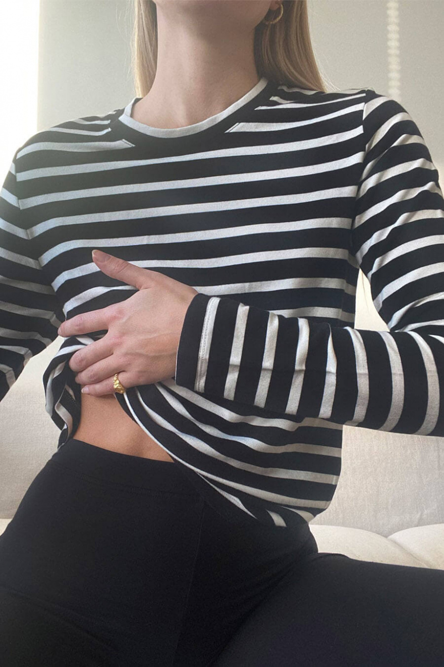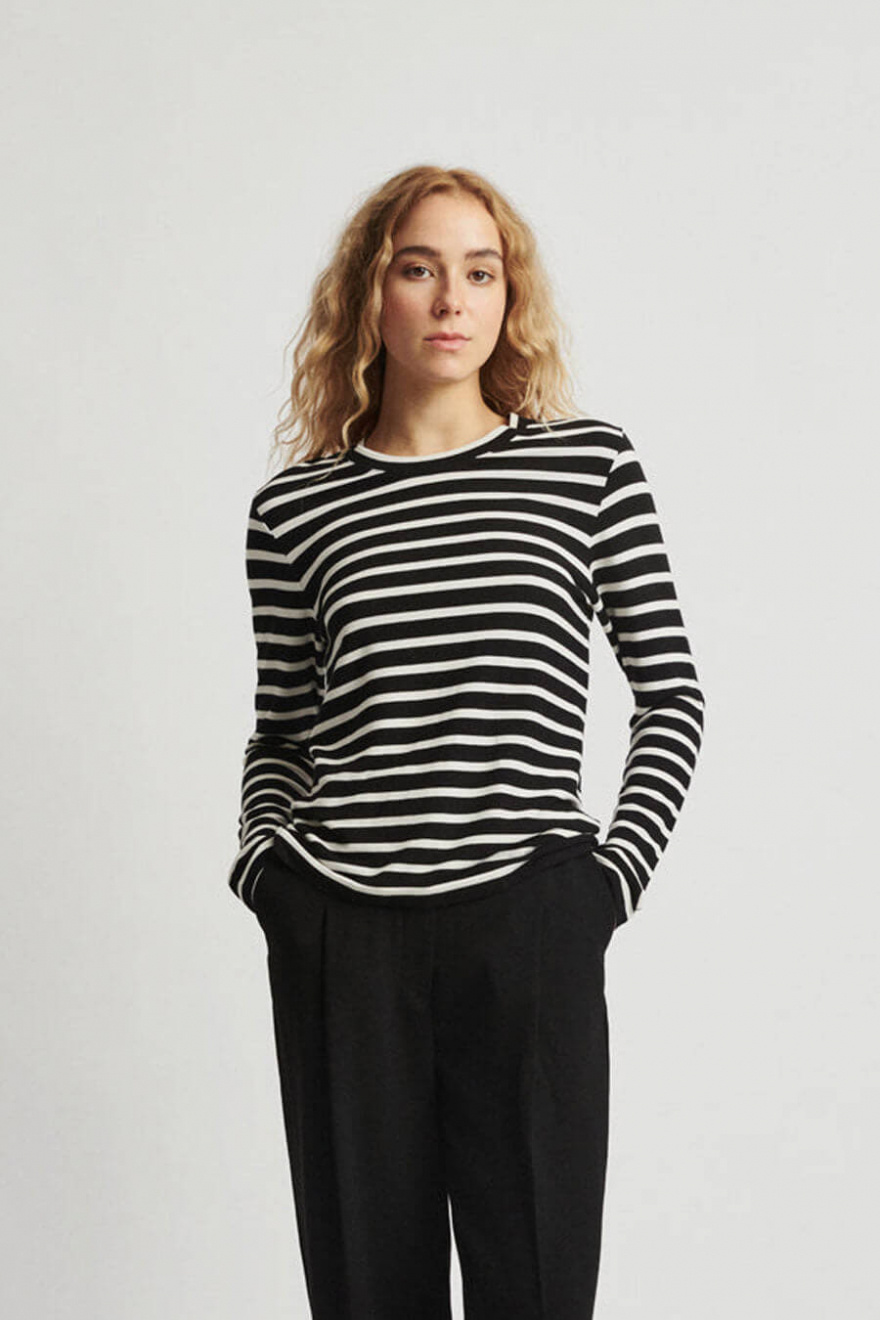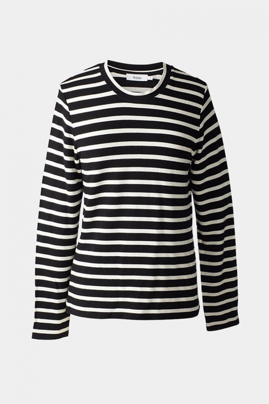 Randig t-shirt med långa ärmar, rund halsringning och normal passform från Stylein.Skön långärmad topp som passar lika bra under kavajen som till jeansen!
