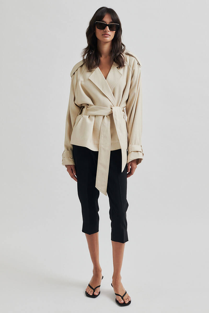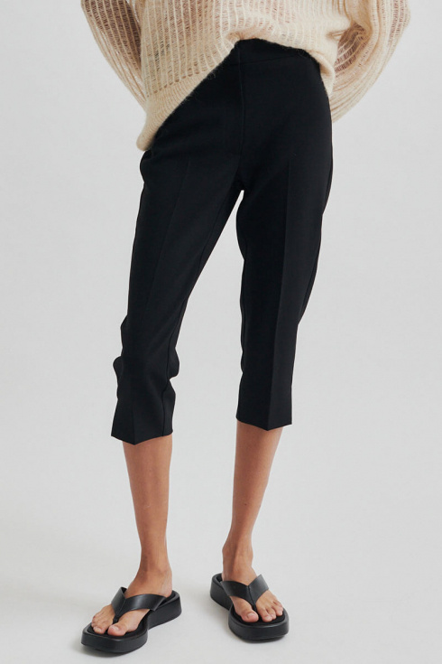 De svarta caprisbyxorna du alltid saknat. Skräddade men avslappnade, perfekta till sandaler på dagen och klackar på kvällen. En tidlös siluett som lyfter varje look – från enkel t-shirt till oversized kavaj. Dressat och avslappnat i perfekt balans.Caprisbyxa i en återvunnen blandning med rak passform, stängs med dragkedja fram och hög midja från Second Female.