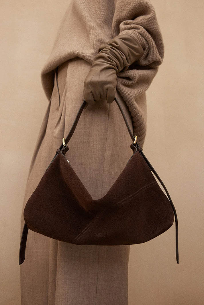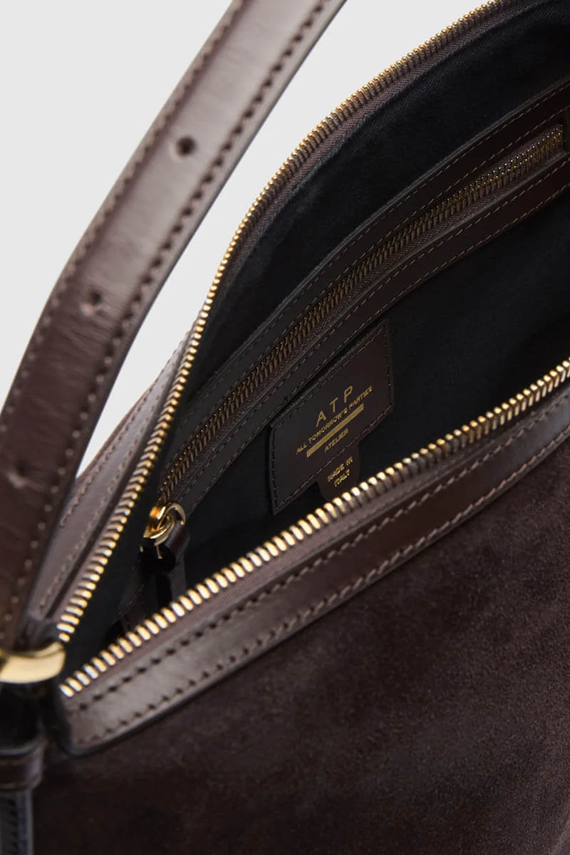 Castellare walnut suede shoulder bag