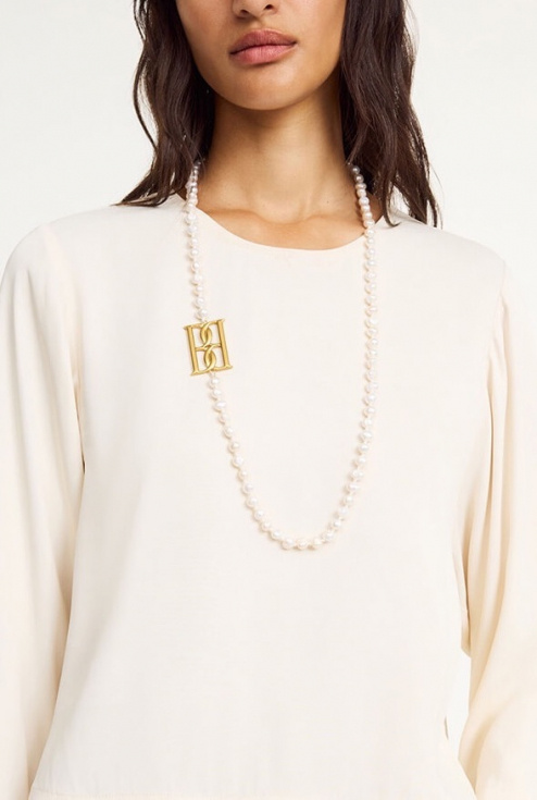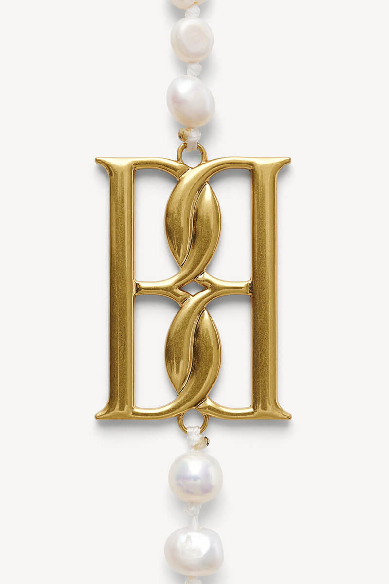 Tidlöst men ändå trendigt – ett pärlhalsband som lyfter varje look. De klassiska pärlorna möter en guldfärgad monogramlogga för en modern twist. Perfekt till allt från vardagsjeans till kvällsklänning. En smyckesfavorit att bära om och om igen.Halsband i sötvattenspärlor med guldfärgad monogramlogga från By Malene Birger.
