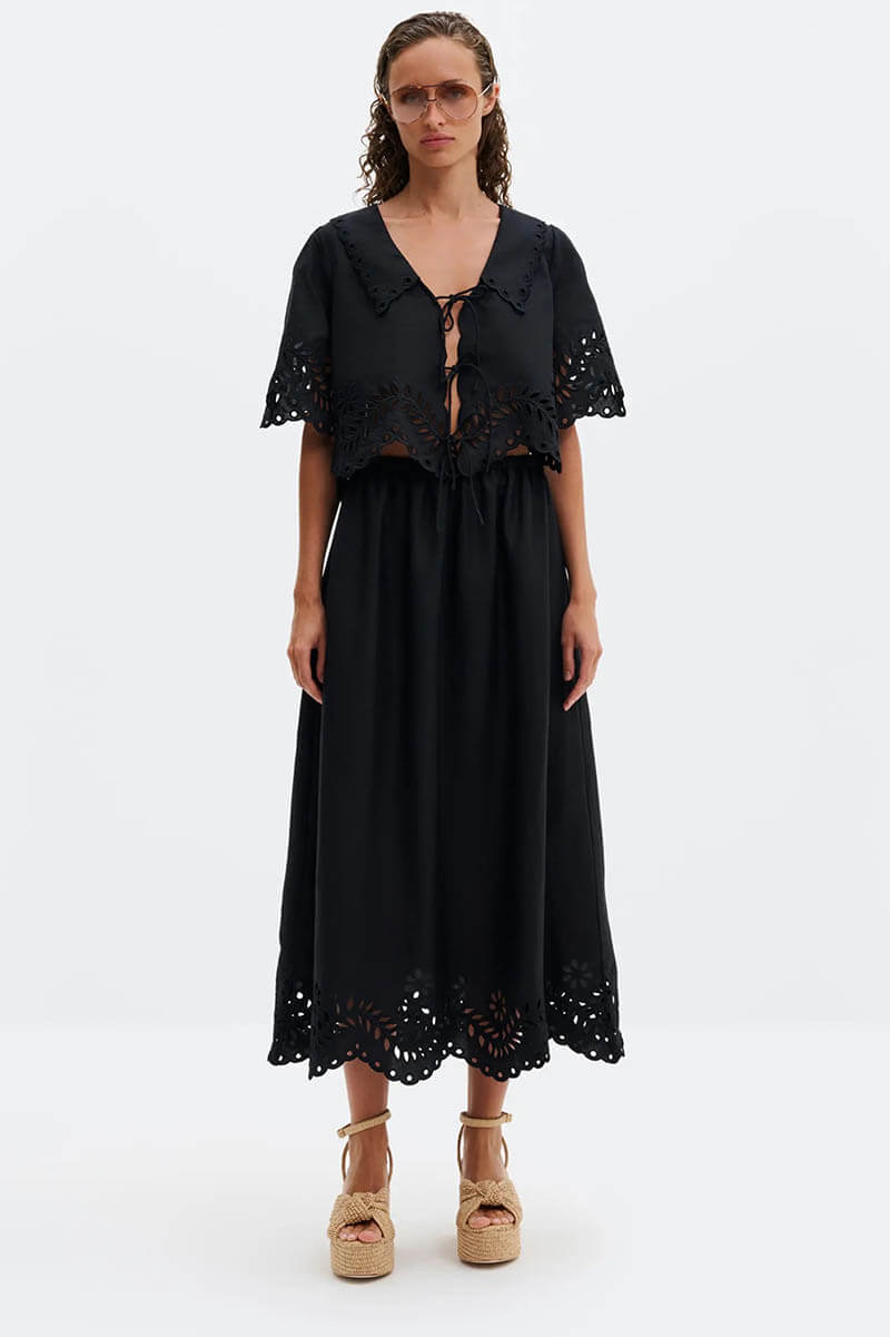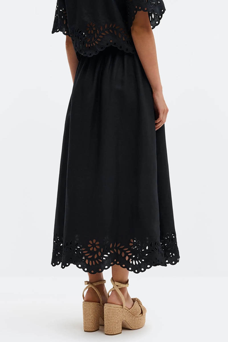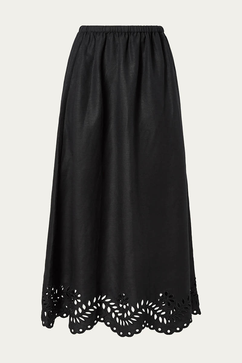 En romantisk och somrig kjol som är det perfekta komplementet till den matchande blusen, men som fungerar lika bra på egen hand. Kombinationen av linneblandning och vackert broderie anglais ger plagget en lyxig med avslappnad känsla.