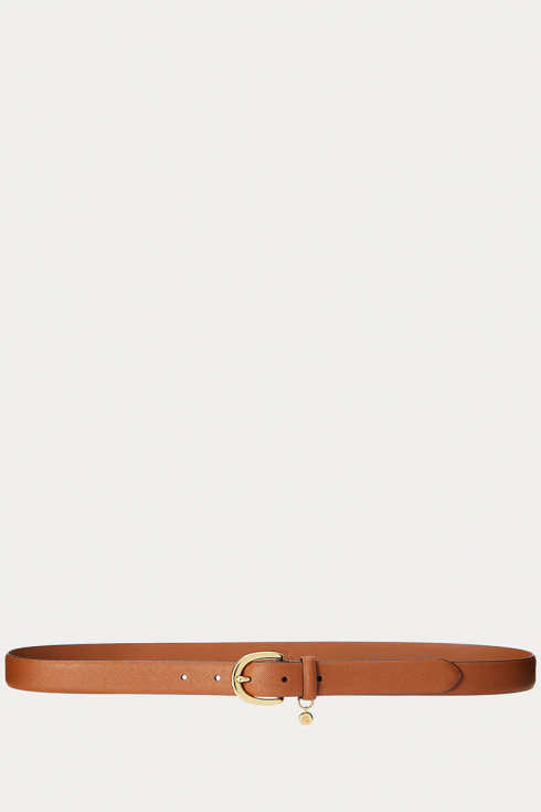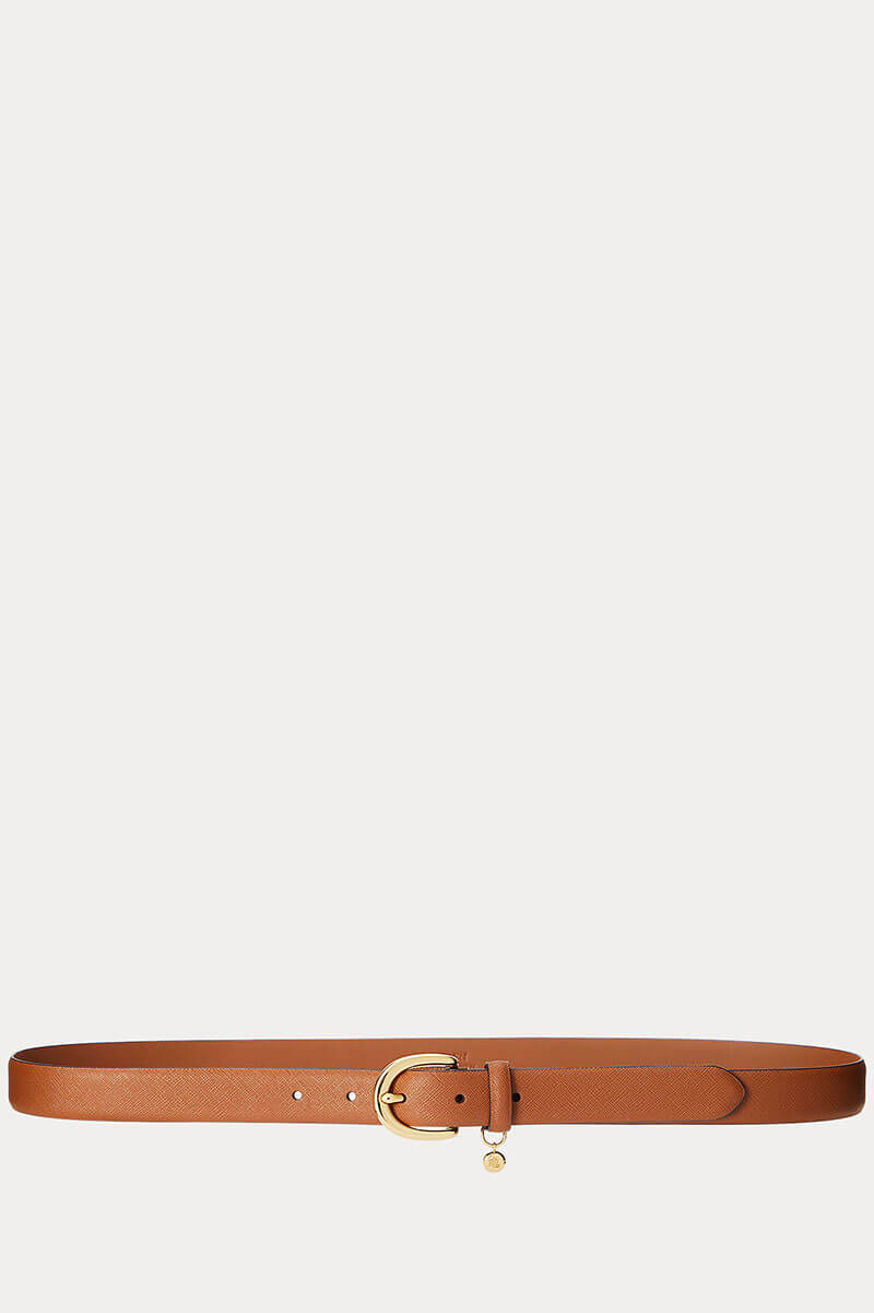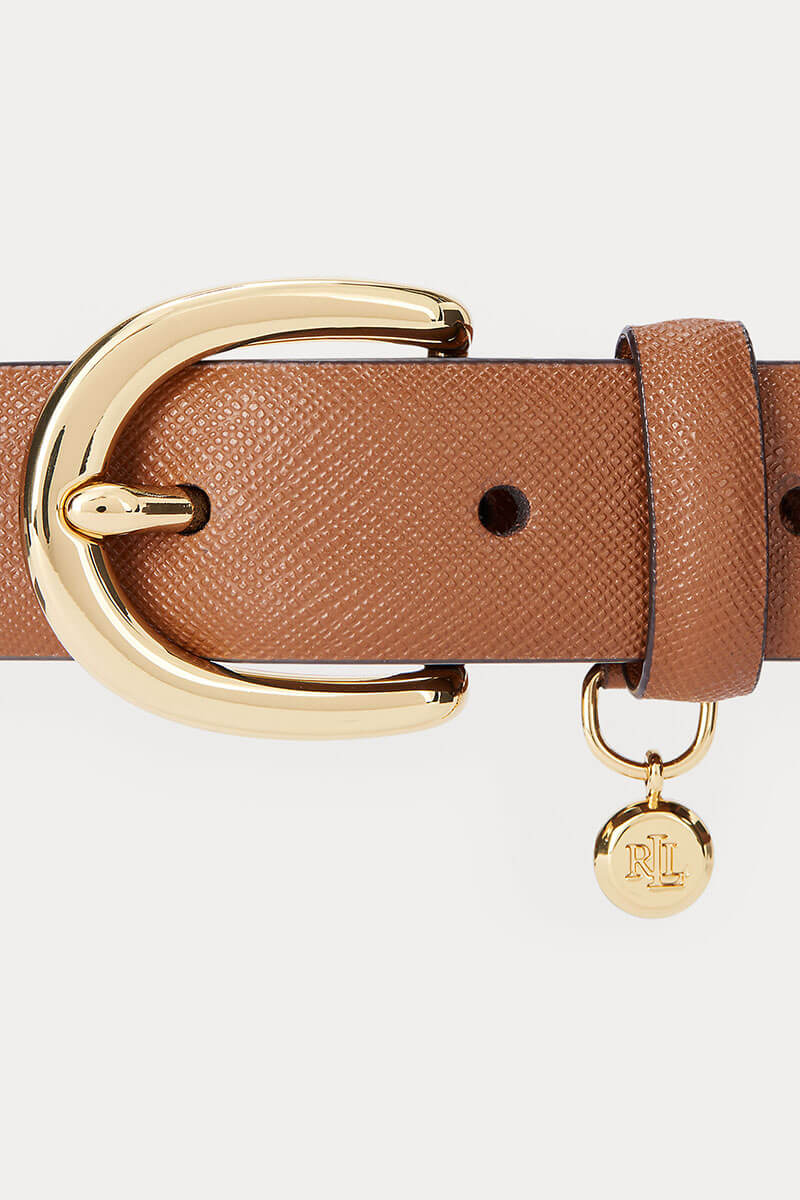 Charm crosshatch leather belt, Lauren tan