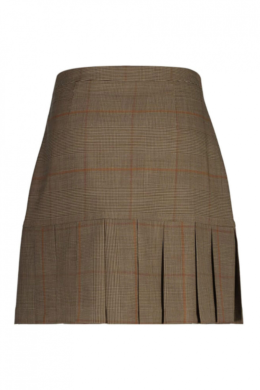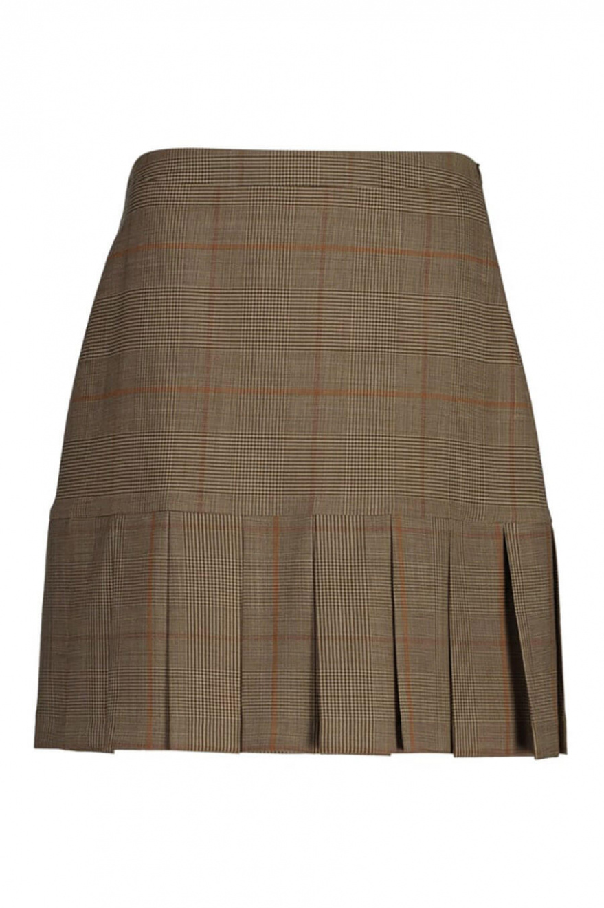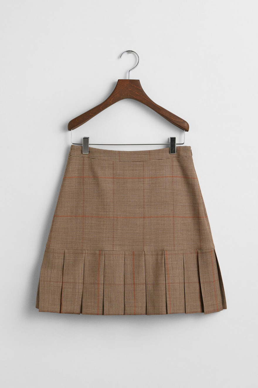 Checked Pleated Skirt, Cumin Beige