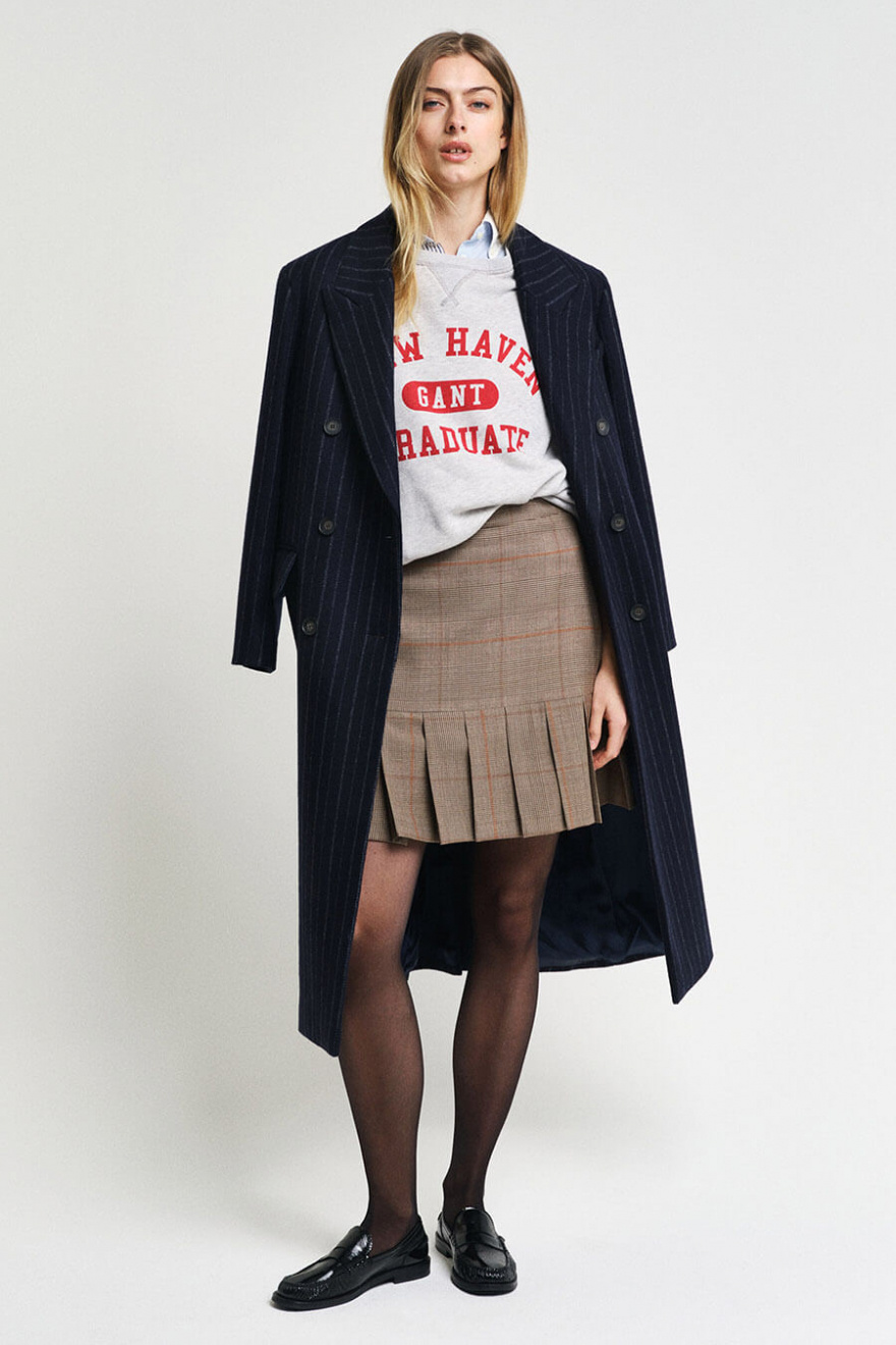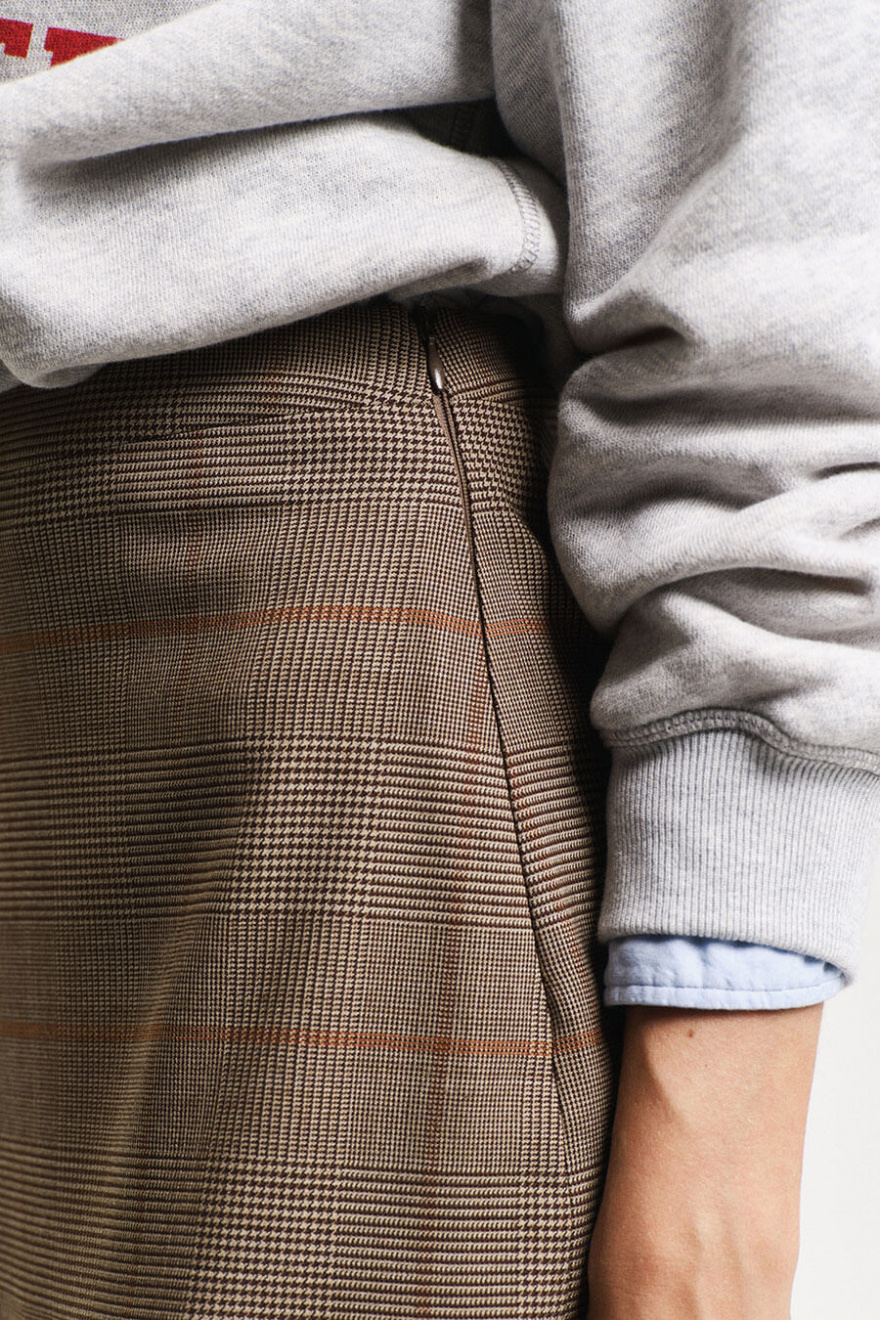 Denna rutiga kjol är perfekt för både vardag och mer uppklädda tillfällen. Den strukturerade designen ger en tidlös känsla som enkelt kan stylas med sneakers eller loafers.Rutig kort kjol i en ullblandning med medelhög midja, gömd dragkedja i sidan och normal passform från Gant.