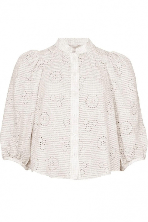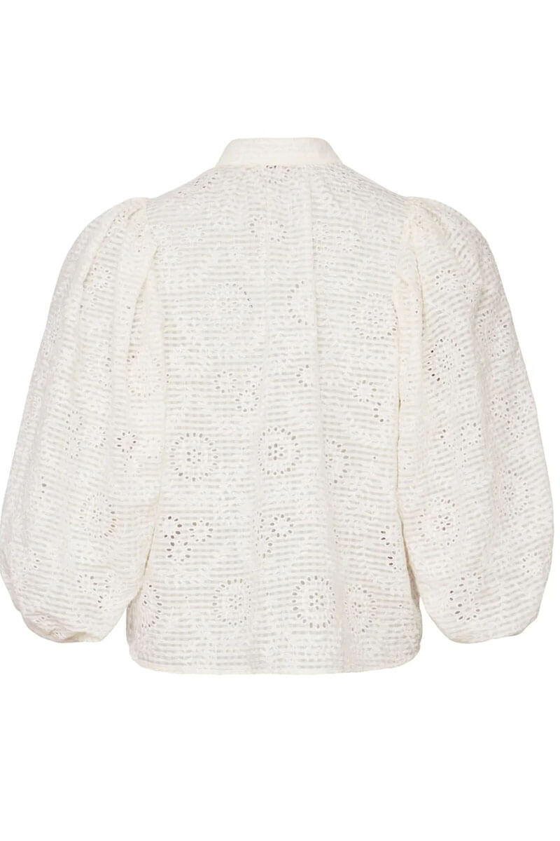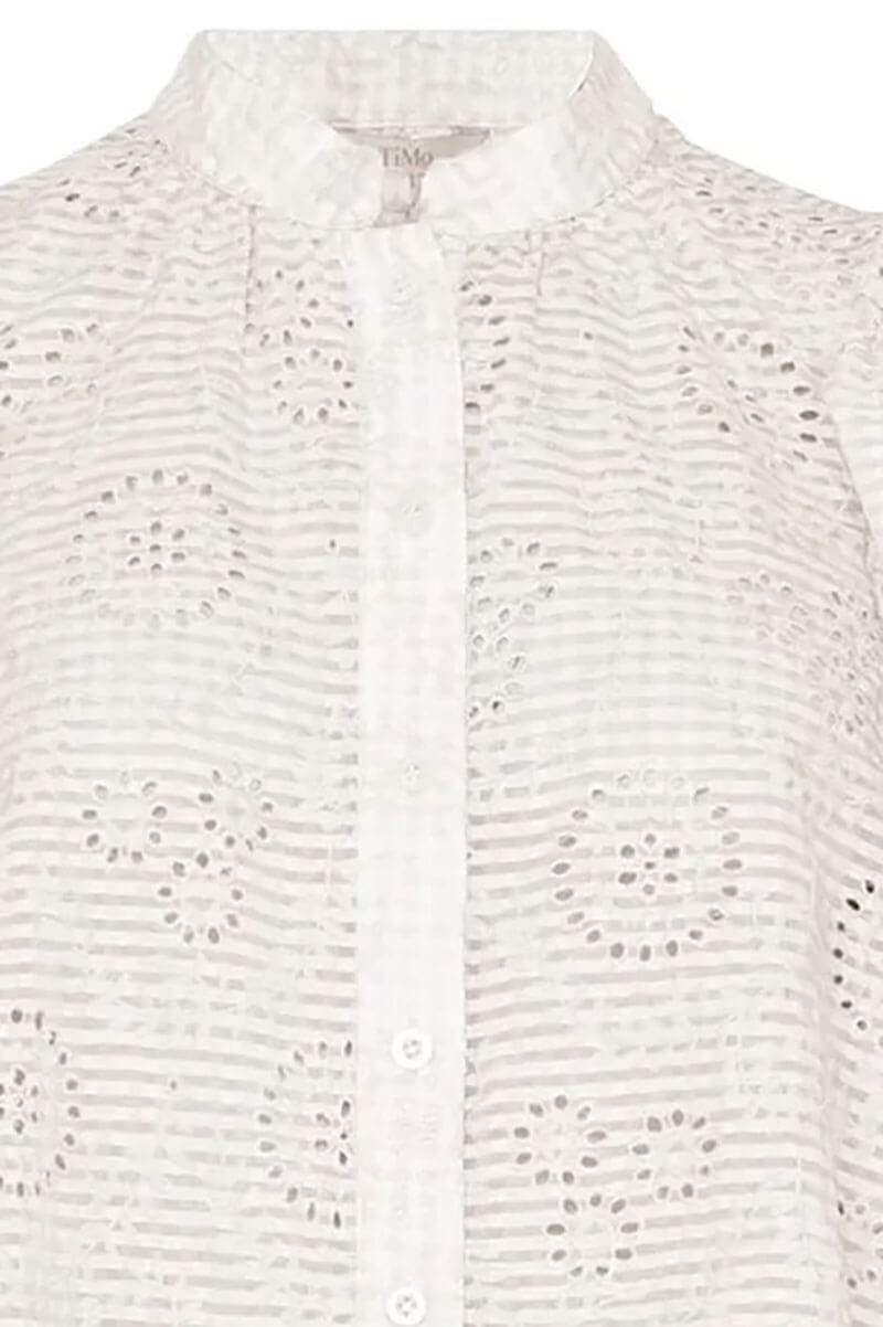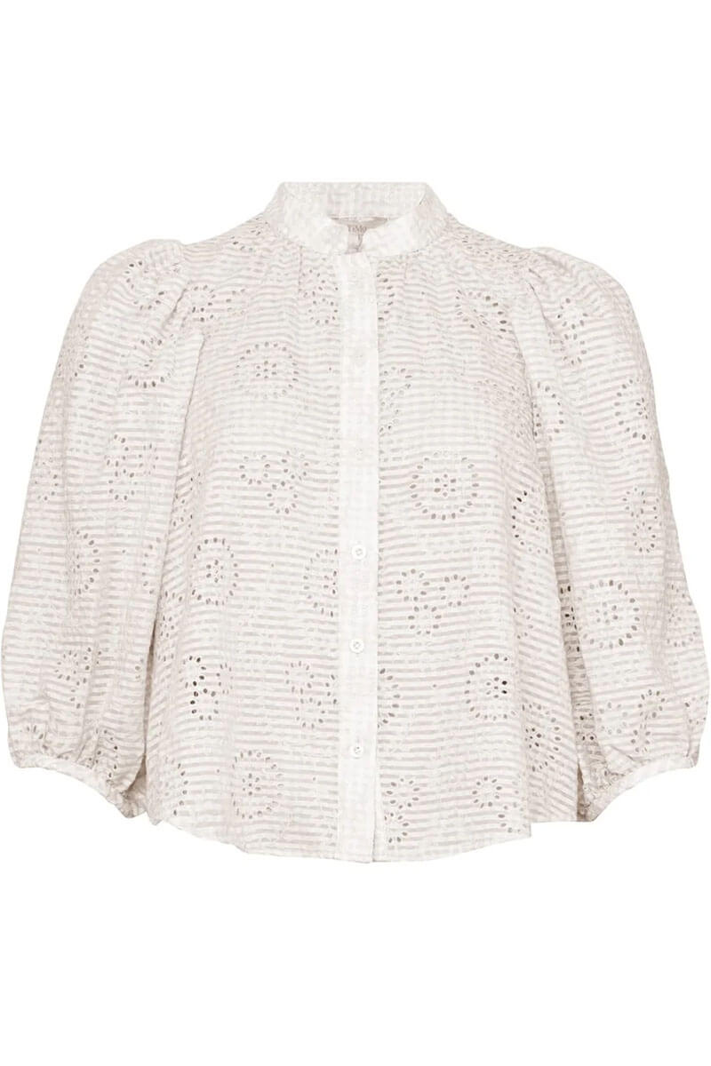 Checks-blusen är tillverkad i vårt mjuka och lätta GRS-certifierade material, med broderade detaljer. Blusen har en avslappnad silhuett, mandarinkrage och voluminösa trekvartsärmar. Den har knäppning framtill.