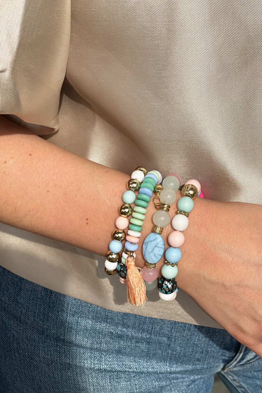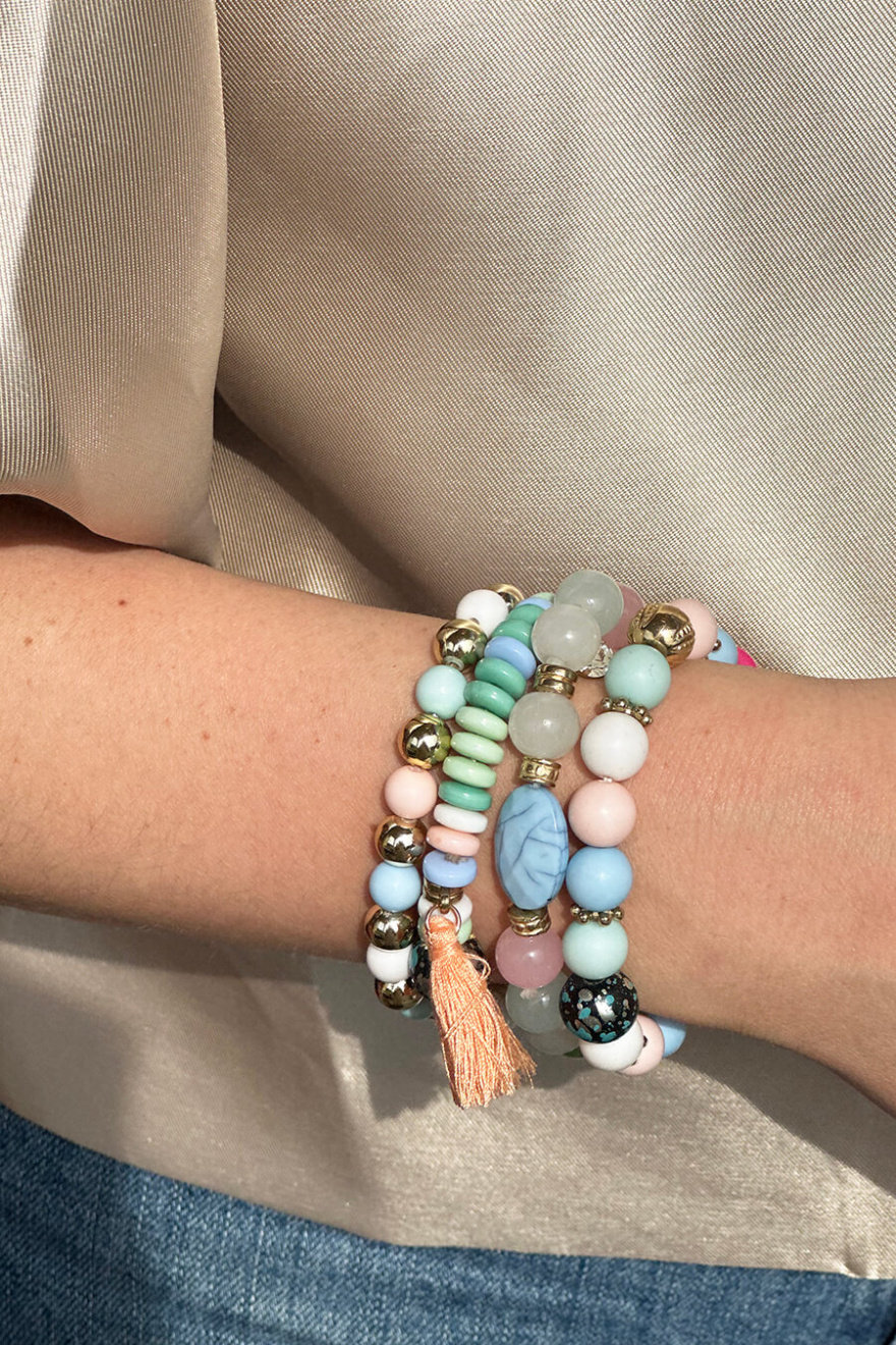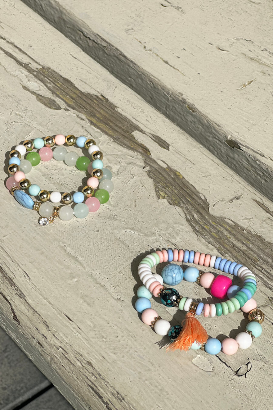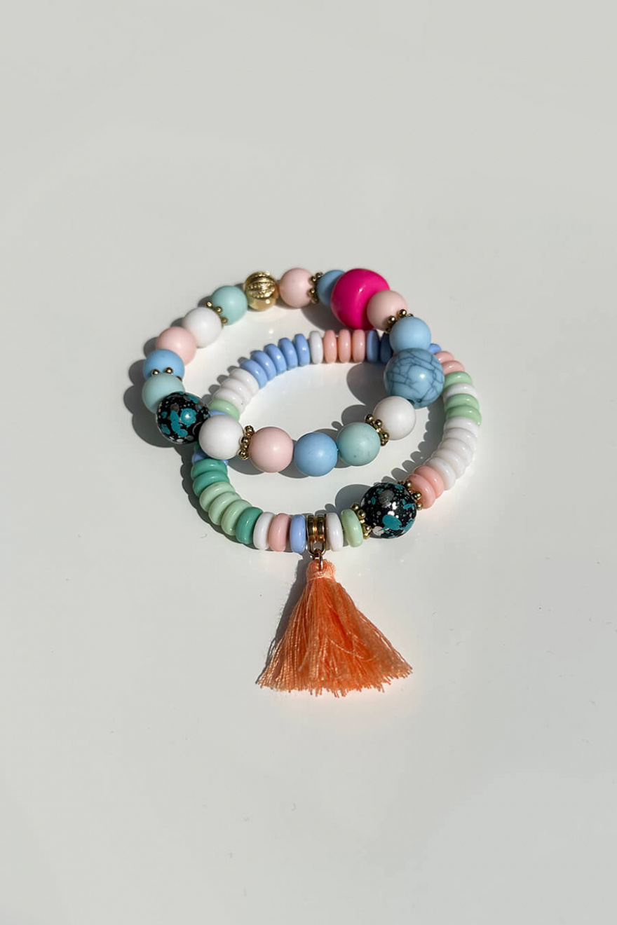 Sommarens armband är äntligen här! Från vårt egna märke har vi tagit fram fina elastiska pärlarmband i fantastiska färger som förgyller din sommaroutfit. Armbanden säljs i 2-pack och kan lätt kombineras med andra armband du redan har hemma i smyckesskrinet.- 100% Polyester