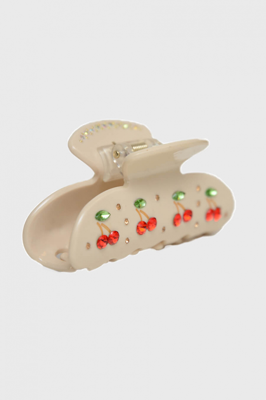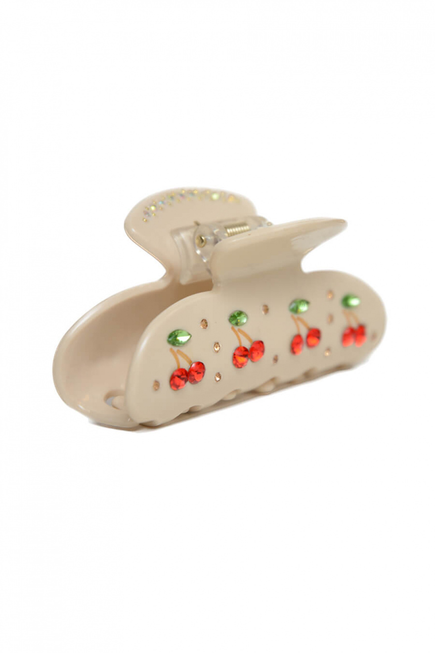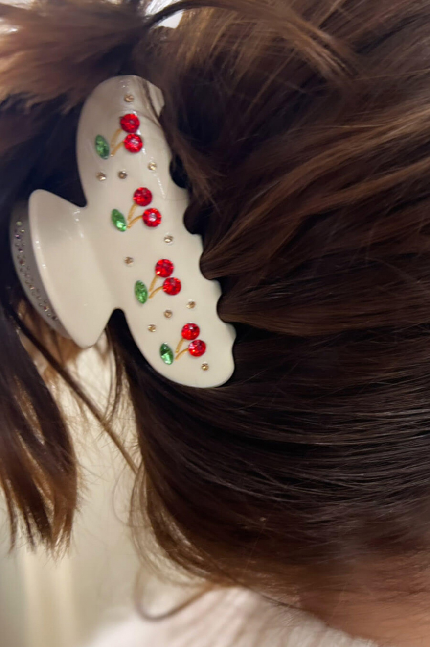 En roligare hårklämma med dekorativa stenar med form av körsbär som gör det lätt att styla upp till vardagen eller den accessoaren som alla pratar om på festen från Elin et Acc.100% Cellulosaacetat