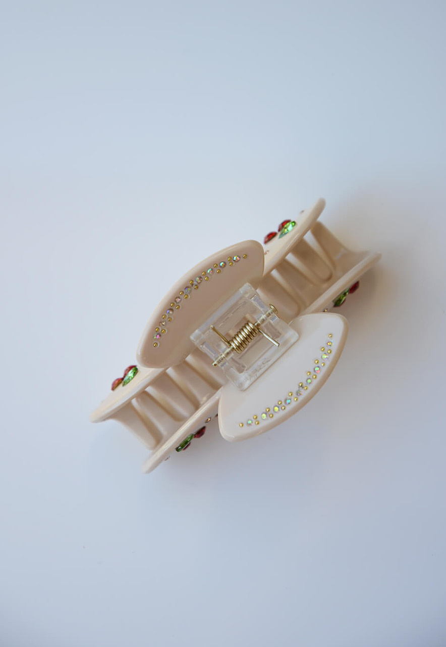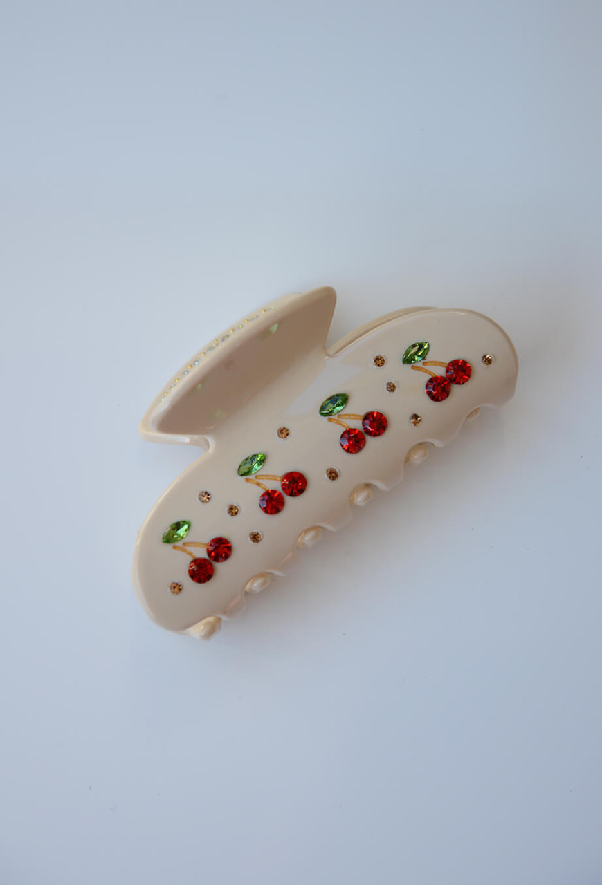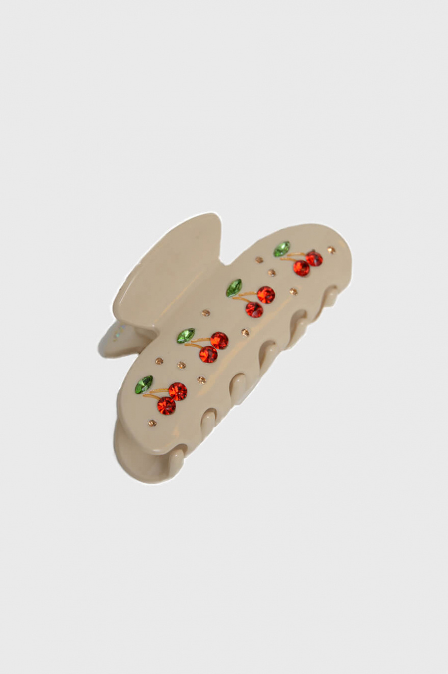 En roligare hårklämma med dekorativa stenar med form av körsbär som gör det lätt att styla upp till vardagen eller den accessoaren som alla pratar om på festen från Elin et Acc.100% Cellulosaacetat