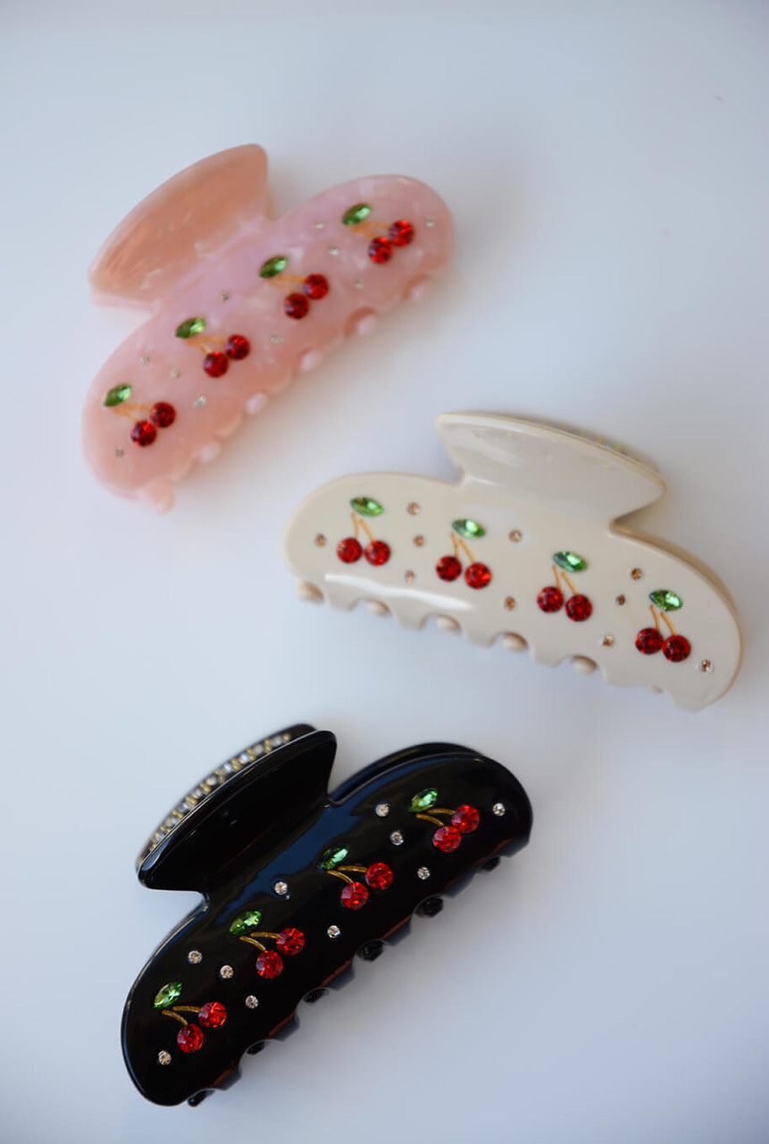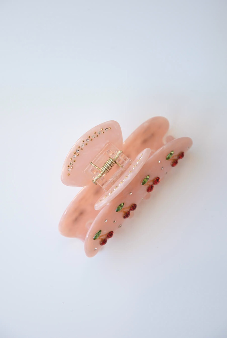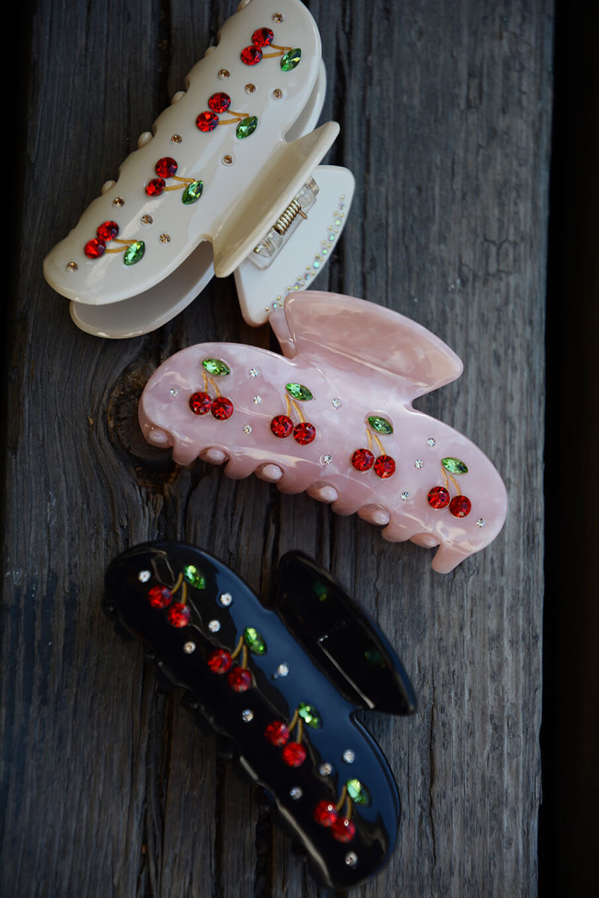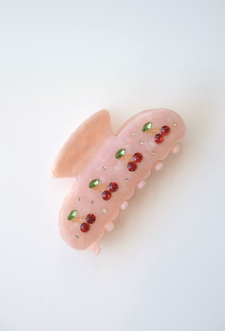 En roligare hårklämma med dekorativa stenar med form av körsbär som gör det lätt att styla upp till vardagen eller den accessoaren som alla pratar om på festen från Elin et Acc.- 100% Cellulosaacetat