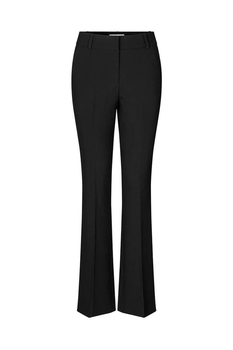 Den perfekta svarta kostymbyxorm både klassiska och bekväma. Den mellanhöga midjan och vida ben från knät ger en väldigt fin siluett. Styla med vit skjorta och loafers för en klassisk look.Svarta byxor i en viskosblandning med fickor i sidan, mellanhög midja, ben i full längd, stängs med dragkedja och knappar från Five Units.