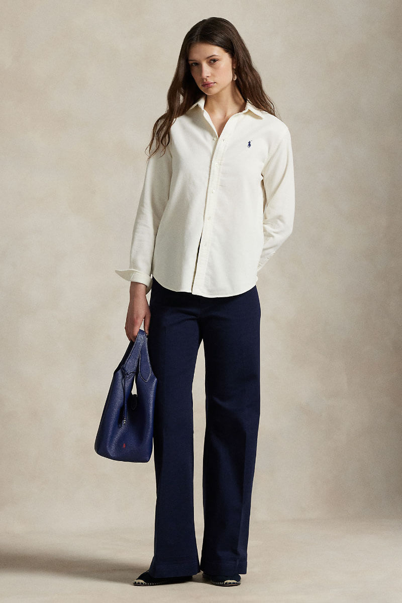 Höstens mest avslappnat eleganta plagg - manchesterskjorta! Styla med jeans och boots för vardagens enkelhet, eller kjol och höga stövlar för en mer sofistikerad look.Manchesterskjorta i en stretchig bomullsblandning med button down krage, broderad logga fram, stängs med knappar och normal passform från Polo Ralph Lauren.