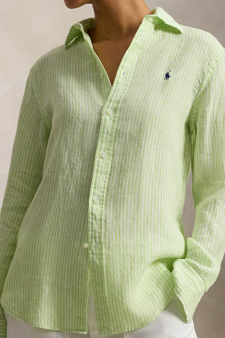 Classic fit striped linen shirt, Electric lime white