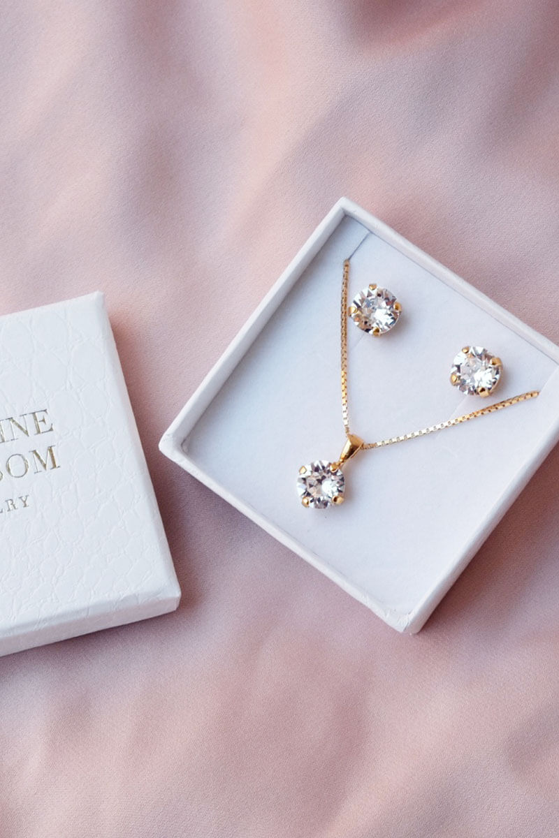 Classic Stud Earrings, Gold & Crystal