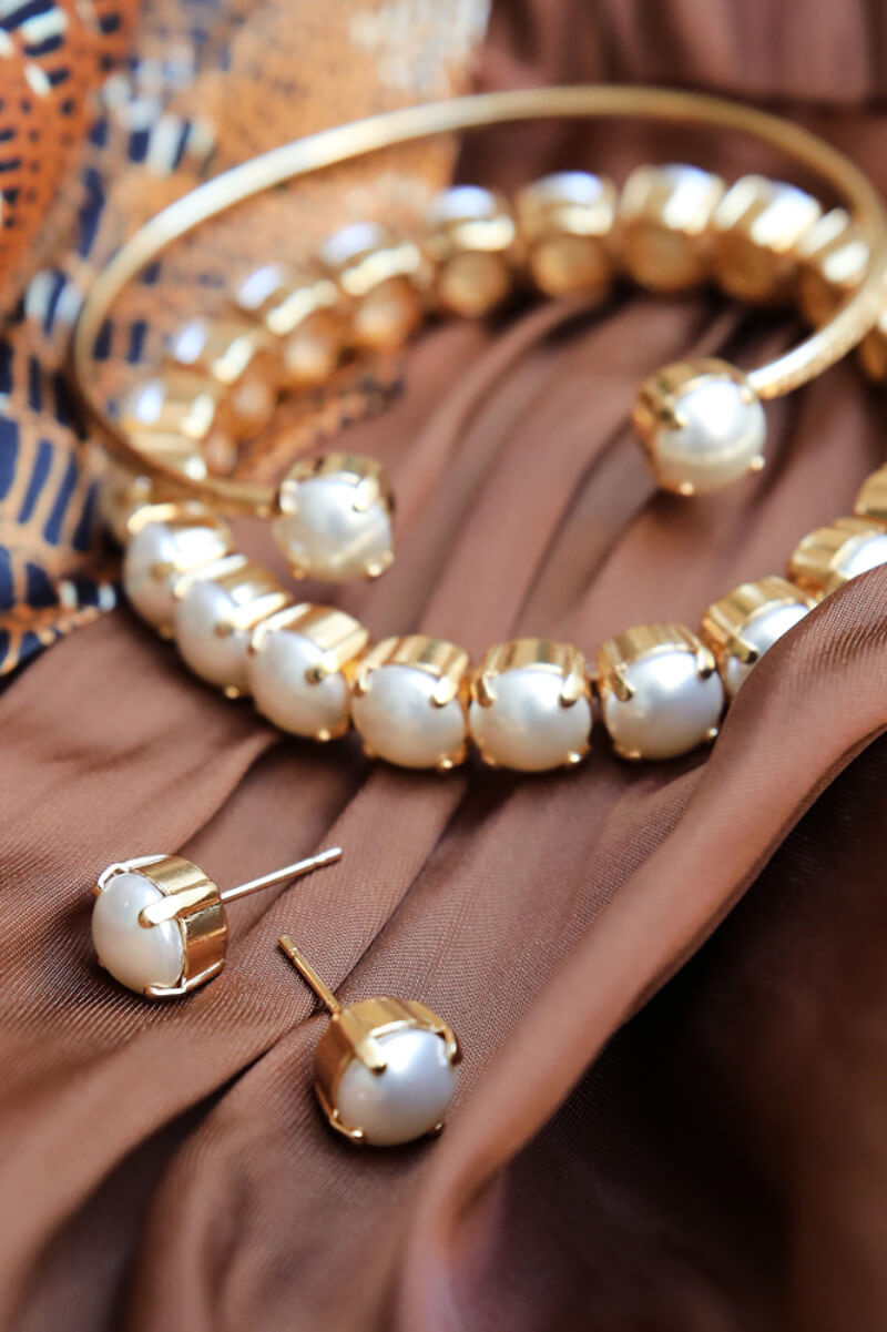 Classic Stud Earrings, Gold & Pearl