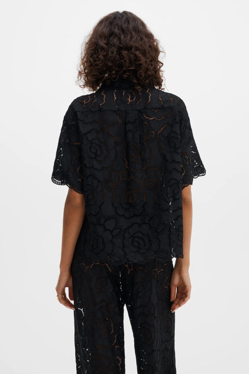 Claudia Short Sleeve Lace Shirt, Black