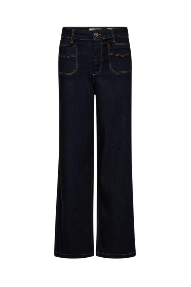 Jeansen har en hög midja, en klassisk femficksdesign och kontrasterande sömmar som framhäver det mörka denimtyget. Tillverkade i en mjuk och lyxig blandning av viskos, bomull och lyocell för optimal komfort från Mos Mosh.