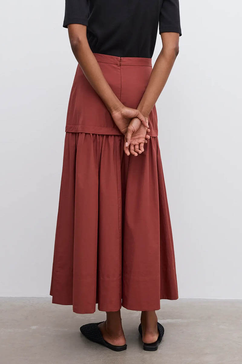Cotton maxi skirt, Mahogny Red