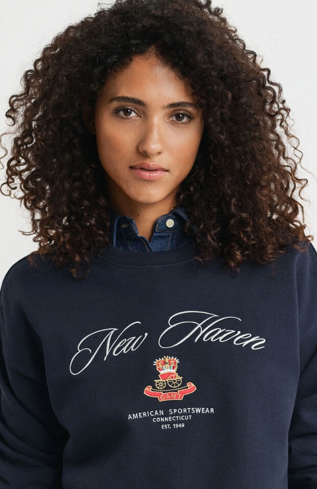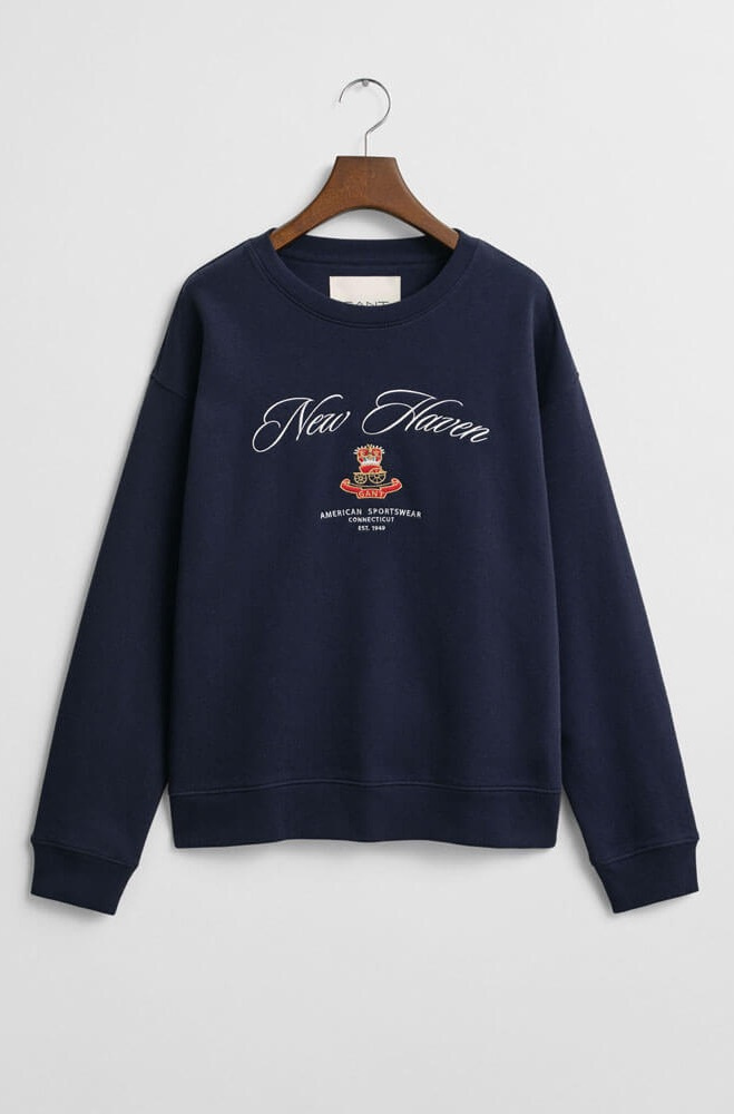 Sweater från Gant du stylar med jeanen eller en fin kjol.Sweatshirt i bomull som snabbt blir din nya vardagsfavorit. Den har ribbstickad krage och muddar. Tröjan pryds även av ett broderat emblem på bröstet som gör den lite extra fin.